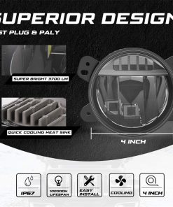 Especificaciones: Voltaje: DC 12V Lúmenes: 3700LM Dimensión: 4″ Dia. Vida útil: 100000Hrs. Material: Aluminio Peso de envío: 1.7 LBS Dimensiones de embalaje: 8.9 x 5.8 x 4.6 pulgadas Compatibilidad: 2018 2019 Jeep Wrangler JL (No compatible con JK) (No compatible con paragolpes deportivos, necesita soporte) Paquete incluido: 2PCS 4″ Luces de Niebla LED redondas para Jeep Wrangler JL