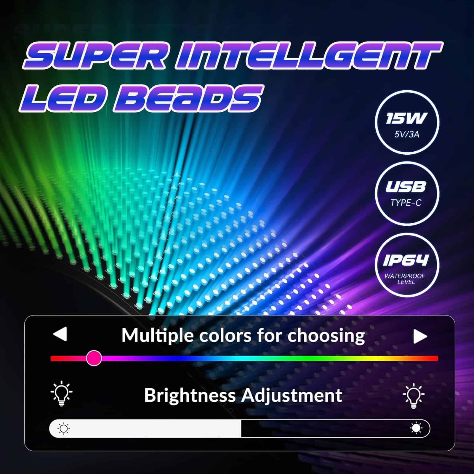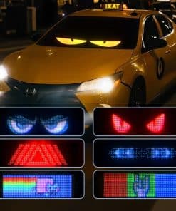 1. Pantalla de LED Flexible Programable para Coche, Fácil de Instalar: El producto está hecho de paneles LED flexibles de alta gama, que son muy finos y ligeros, con un grosor de aproximadamente 2 mm. La Luz de Ojos del Diablo para ventanas de coches puede doblarse, plegarse y dar forma para adaptarse a una variedad de superficies, ofreciendo flexibilidad y durabilidad. Con el recubrimiento de polímero adhesivo impermeable acompañante, se puede instalar fácilmente en el coche.