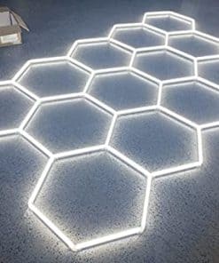 Estas son las luces de techo LED hexagonales diseñadas para el taller de autos o el garaje doméstico; El efecto de iluminación único y fresco hace que su garaje tenga un efecto lujoso, alto flujo luminoso y los hexágonos hacen que la luminosidad sea uniforme, sin deslumbramiento. Ahorro de energía, 0,342w cada hora pero alcanza 6000lm. Fácil de configurar mediante la conexión de enchufe; Hay un manual adentro. Para la fijación, el conjunto completo se puede atornillar directamente al techo, si es techo vacío, debe soldar un marco o usar la rejilla de alambre duro para soportar las lámparas, son aproximadamente 8,2 kg en conjunto, no son pesadas, solo necesitan el soporte del techo.