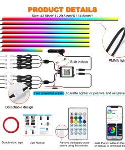 3. 16 millones de colores y 213 modos: Disfruta de más de 16 millones de colores estáticos y 213 modos dinámicos gracias a un intuitivo modo DIY. Perfecto para tus diferentes estados de ánimo al conducir o diferentes decoraciones festivas.