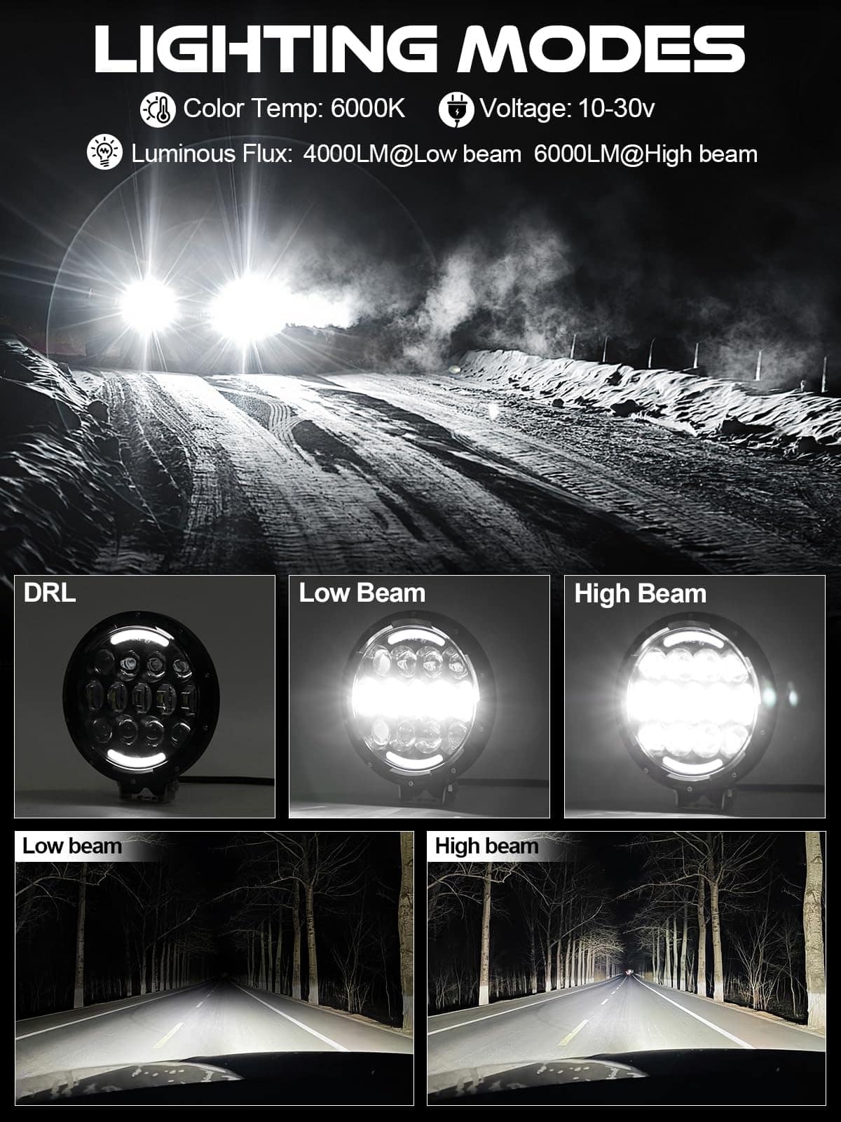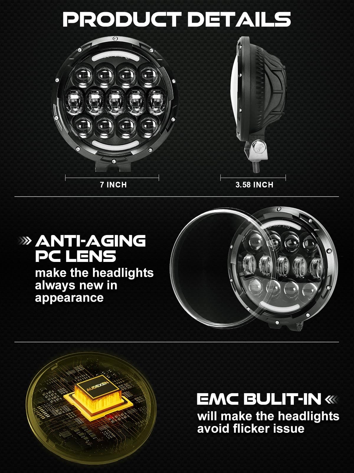 Luces de Trabajo LED AUDEXEN, 7 Pulgadas 105W Redondo Spot