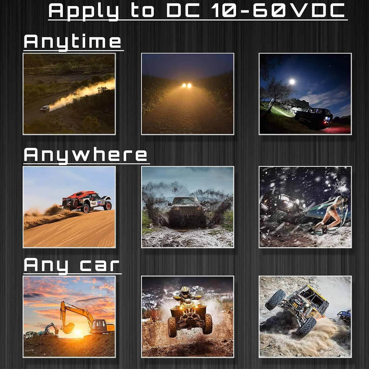 5. Amplia Aplicación – Los pods LED pueden funcionar como luces todoterreno, luces SUV, luces ATV, luces UTV, luces de tractor, luces de motocicleta, luces de barco, compatibles con casi todos los vehículos 4×4. Incluso se puede utilizar para luces de jardín, iluminación de patio trasero, iluminación arquitectónica, etc.