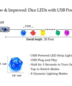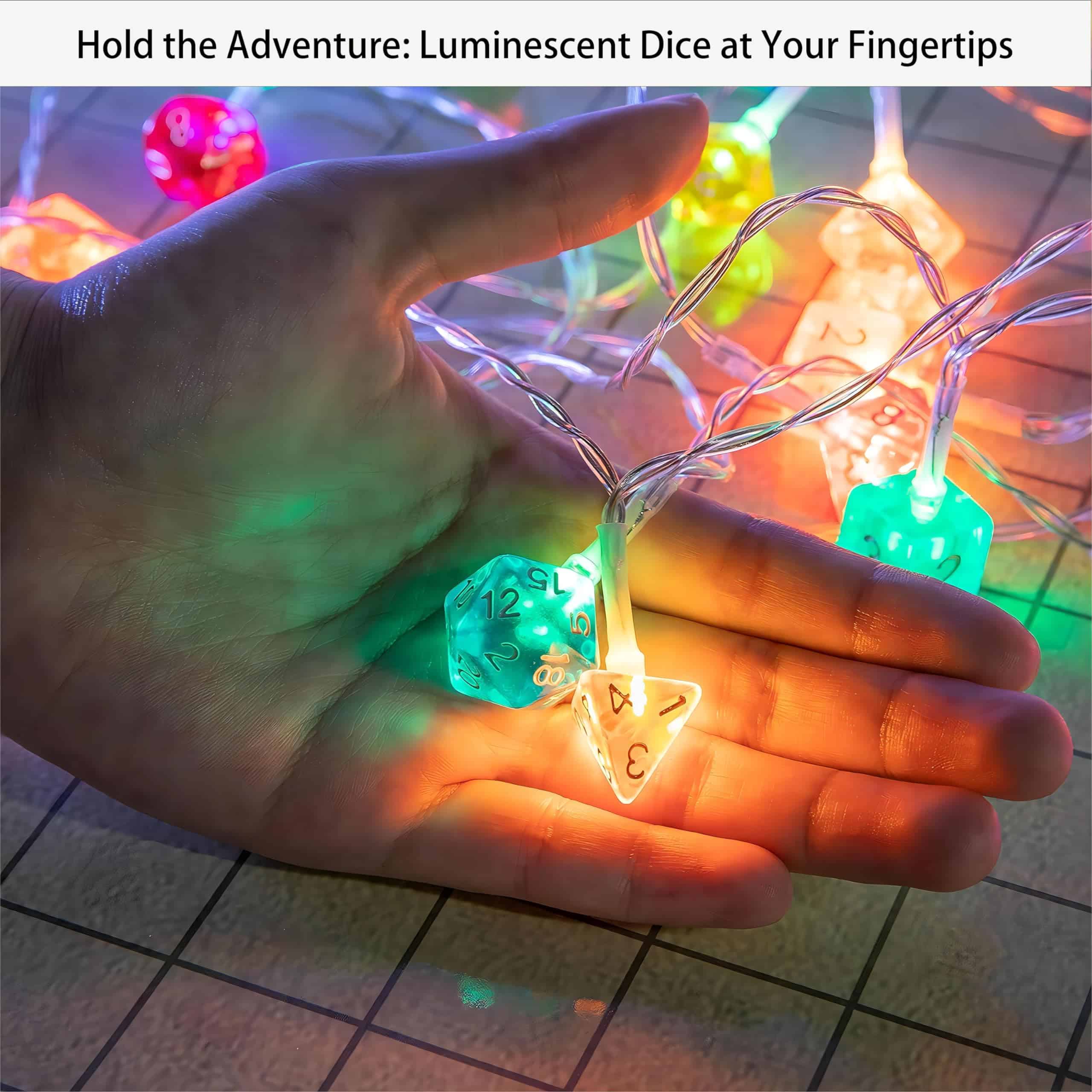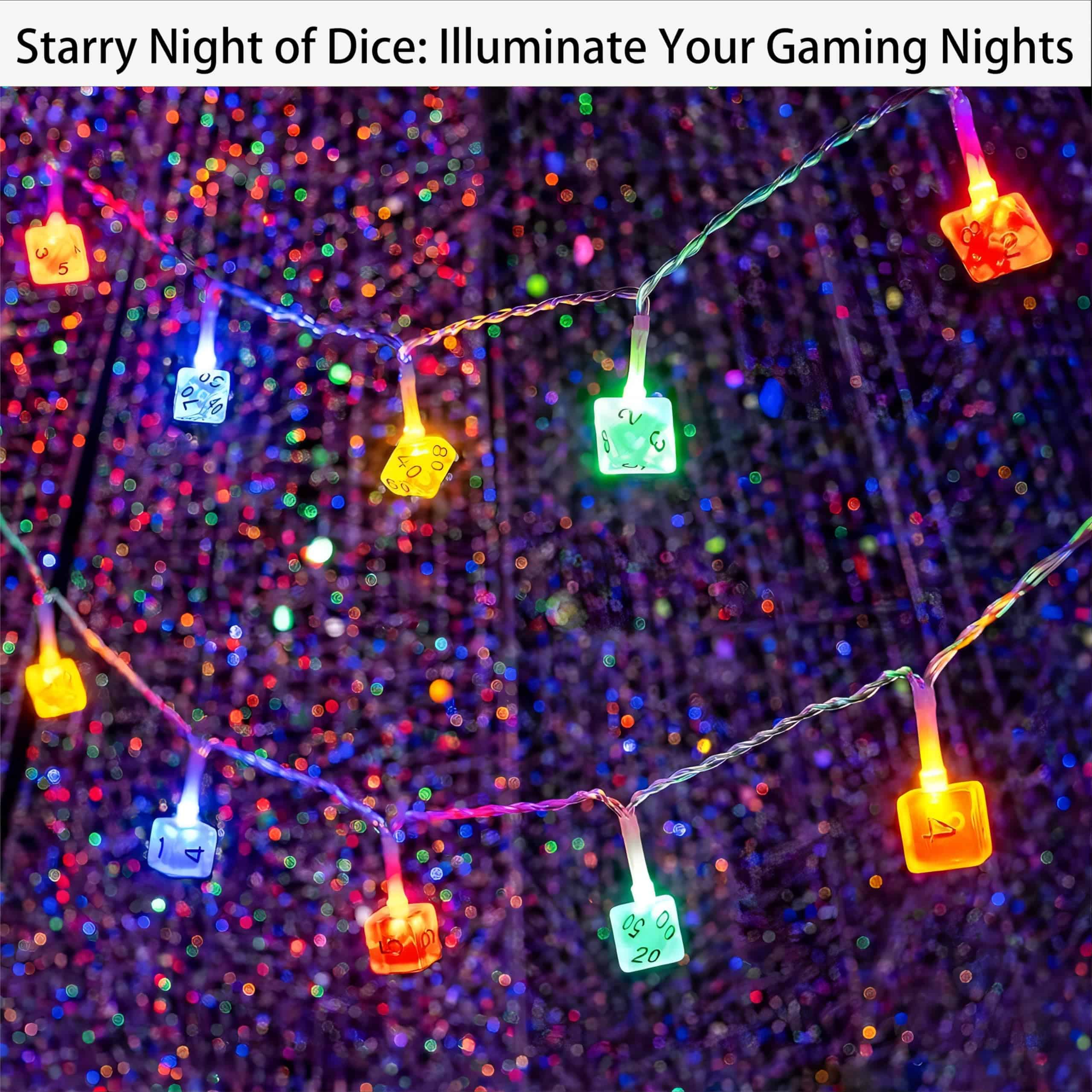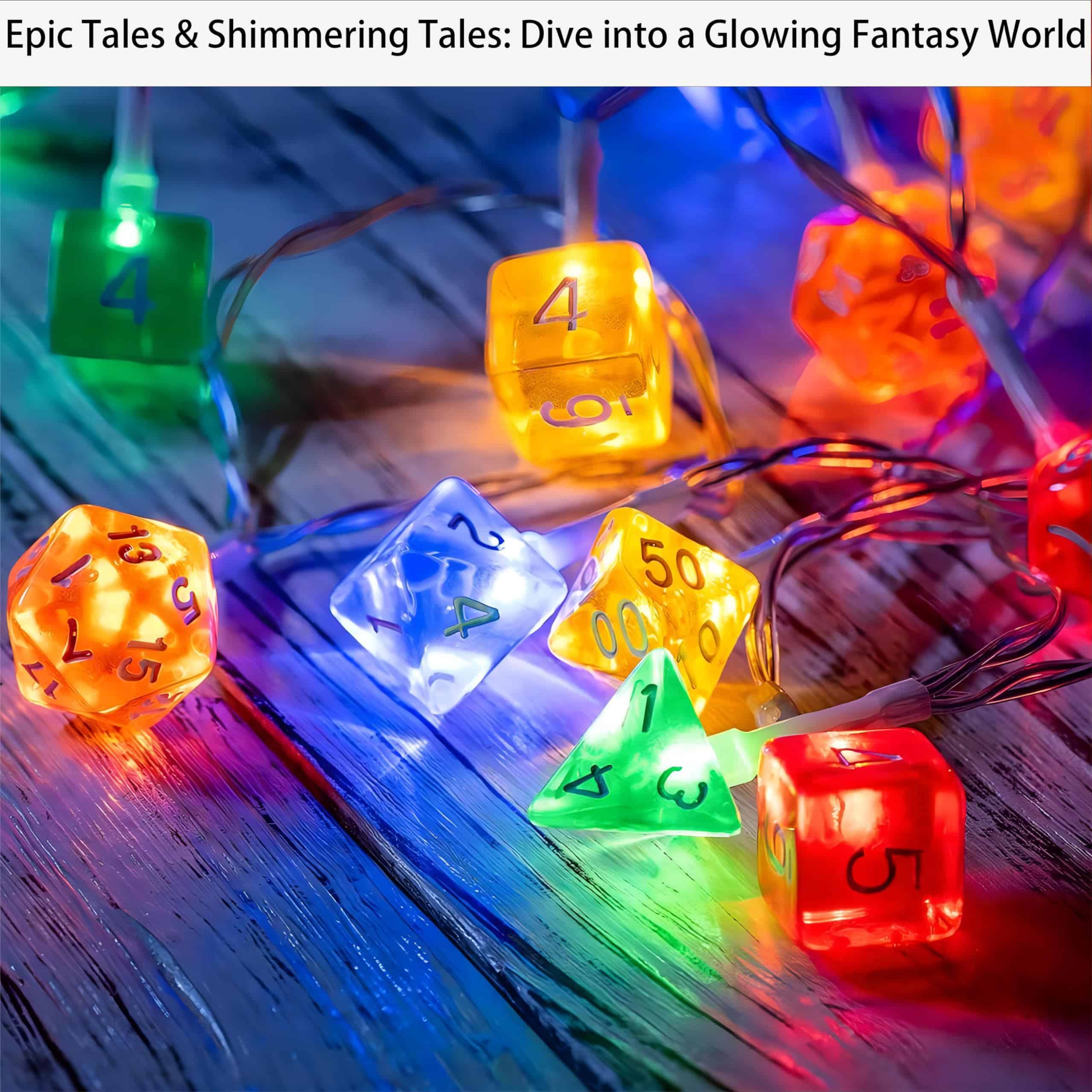 2. Diseño Único de Dados: Destaca con nuestras luces LED de cuerda con un diseño de dados poliédricos único, imprescindible para los entusiastas de los juegos de rol. Ilumina tu experiencia de juego con un ángulo de vista estable de 360 grados que se ilumina en todas direcciones.