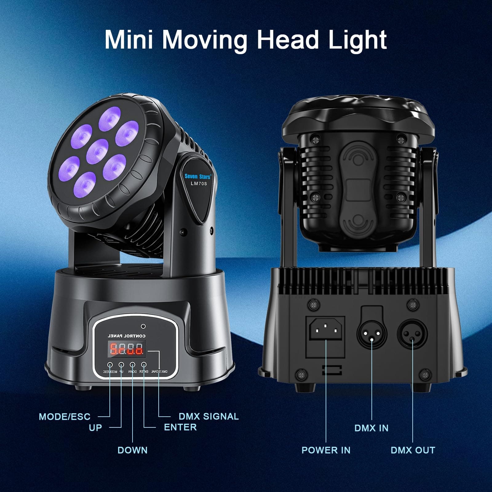 1. Cabeza Rotativa Dinámica: Este set de luces DJ de cabeza móvil cuenta con una cabeza grande que rota con 540° en el eje X y 270° en el eje Y. Puedes ajustar libremente las formas de patrones preestablecidas para efectos de iluminación dinámicos y personalizables. Perfecto para añadir movimiento dramático a cualquier actuación o evento. 2. Potentes Efectos Estroboscópicos: Equipadas con 7 x 8W RGBW 4-en-1 LEDs, estas luces de cabeza móvil DJ ofrecen efectos estroboscópicos vibrantes, transiciones suaves de color, combinaciones de colores estáticos RGBW y multi-color, proporcionando iluminación de calidad profesional que crea un ambiente impresionante. 3. Múltiples Modos de Control: Estas luces DJ profesionales ofrecen modos Auto, Activado por Sonido, Maestro-Esclavo y DMX 512 (9/14 canales). Sincroniza fácilmente varias luces para un espectáculo unificado. El modo DMX permite un control centralizado a través de varias luces. Nivel de ruido: 52dB, verifica la adecuación en espacios silenciosos como iglesias o salas de reuniones. 4. Aplicaciones Versátiles: Ideal para una variedad de eventos como shows de DJ, bares, fiestas, bodas, actuaciones en vivo y celebraciones festivas, estas luces DJ de cabeza móvil pueden satisfacer las necesidades de iluminación de diferentes entornos y crear un ambiente cautivador donde se utilicen. 5. Garantía y Soporte Confiables: Este paquete incluye 2 x Luces DJ de Cabeza Móvil, respaldadas por una garantía de 12 meses y un soporte al cliente receptivo de SevenStars, puedes confiar en su rendimiento duradero y excelente servicio.