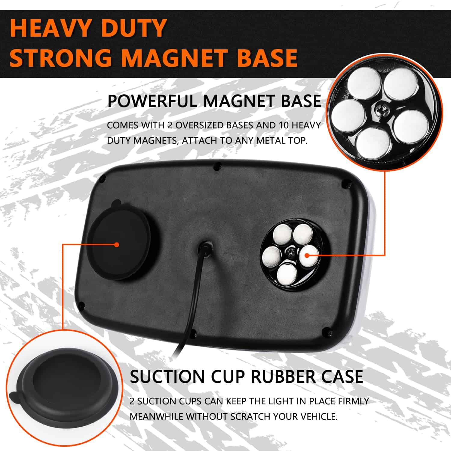 2. INSTALACIÓN FÁCIL: viene con imanes potentes (probados hasta 60 mph pero no se caen) y conector de interruptor de 12-24V. Solo es necesario colocar los imanes potentes en cualquier parte metálica exterior de los autos y enchufar el interruptor.