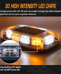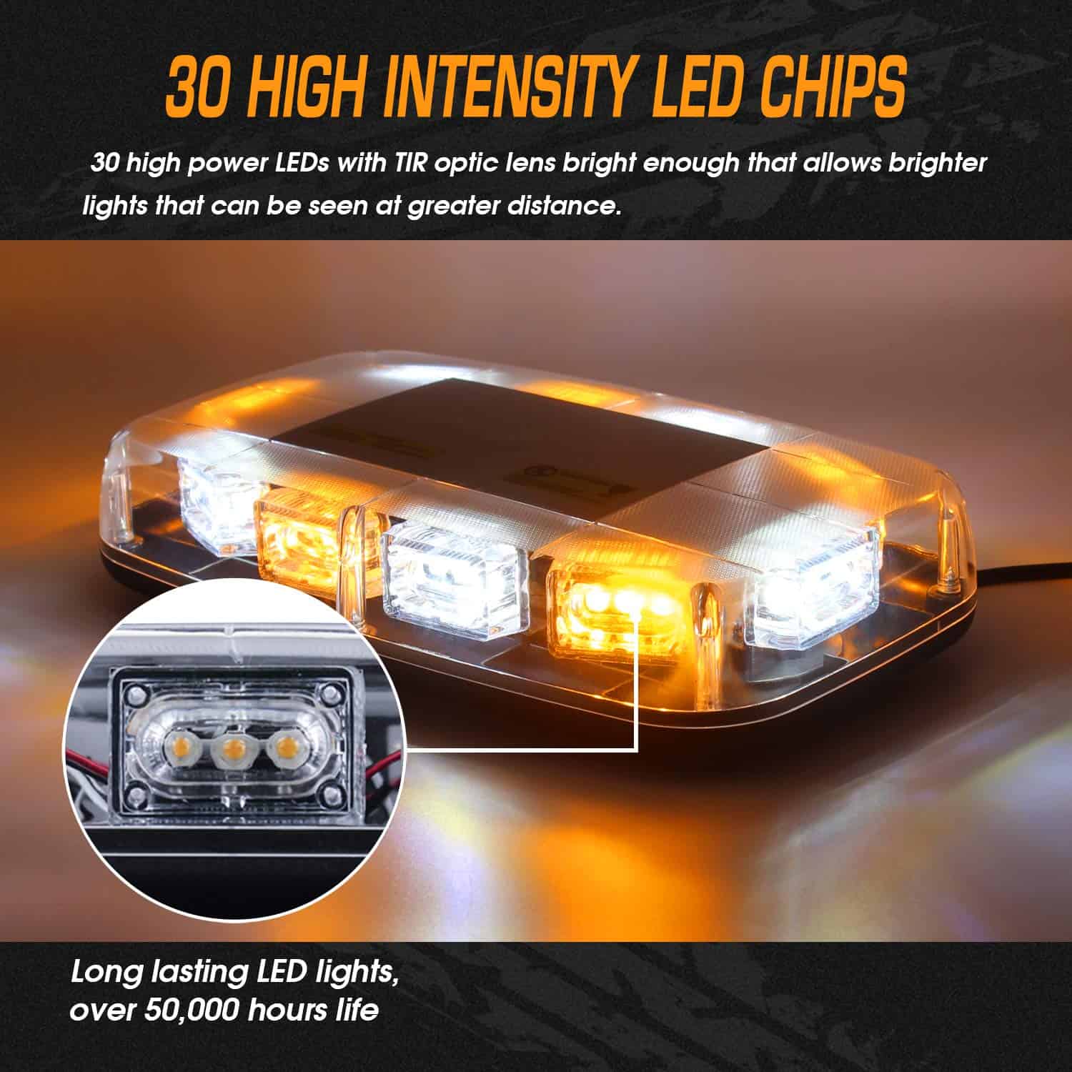 1. SUPER BRILLANTE: 30 chips LED de alta intensidad con alta visibilidad durante el día, la medianoche, días de lluvia o niebla. Mejora la seguridad al conducir y evita accidentes.