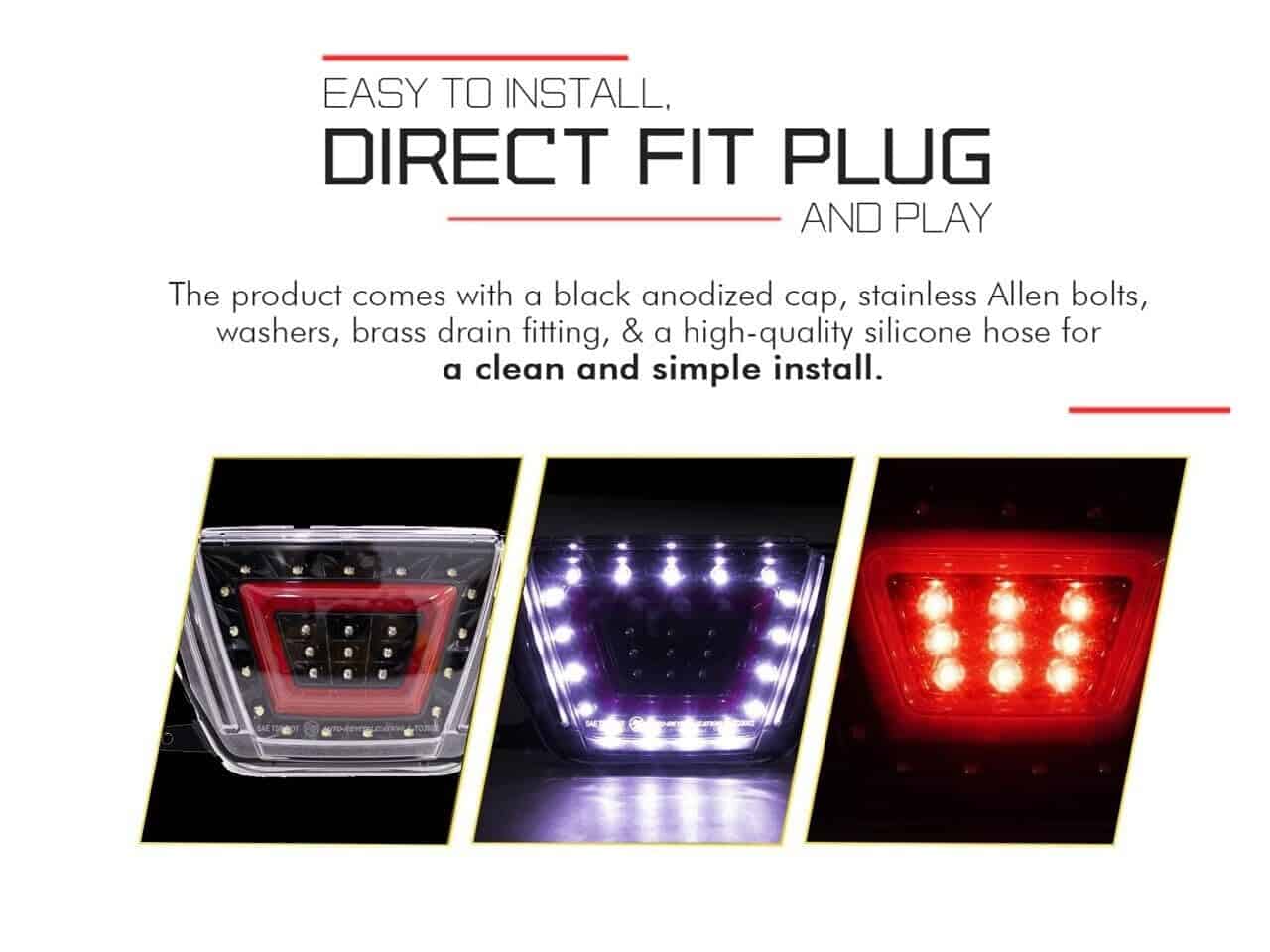 Dale a tu auto un aspecto nuevo y refrescante: La luz de freno trasera estilo F1 reemplaza fácilmente la moldura que cubre la parte baja central del chasis donde se encuentra una luz trasera en los vehículos JDM Toyota. El exterior de plástico cuenta con 9 luces LED y una lente para la máxima luminosidad y claridad!. Garantía de calidad premium: A diferencia de otras luces traseras LED y luces de niebla, nuestra exclusiva luz LED de reemplazo cuenta con un marco de calidad premium y duradero que es completamente resistente al agua y a los golpes. ¡La tercera luz de freno brillará igual de luminosa en un día lluvioso o nevado! Viaja con estilo: La apariencia elegante y moderna de nuestras luces de freno LED de calidad premium harán que tu Subie se destaque entre la multitud! Mejora tu visibilidad con nuestra popular y práctica luz trasera de niebla LED 2 en 1. Fácil de instalar: El kit de luz de freno trasera incluye todo el hardware necesario, incluida la luz trasera de niebla LED, arnés de cableado, soporte de montaje trasero, tapas, tornillos, tapón anodizado negro, pernos Allen de acero inoxidable y arandelas, accesorio de drenaje de latón y manguera de silicona de alta calidad para una instalación limpia y simple.