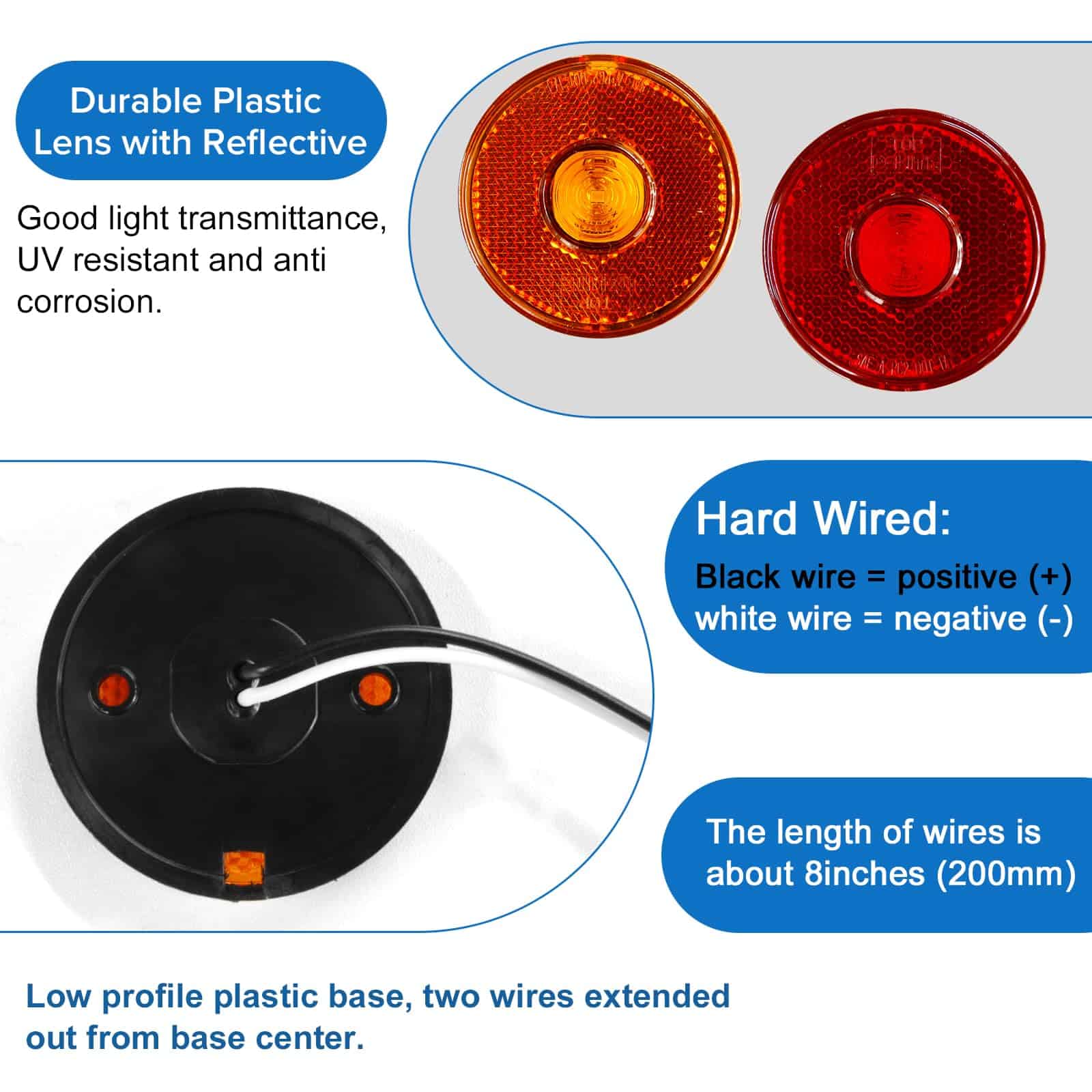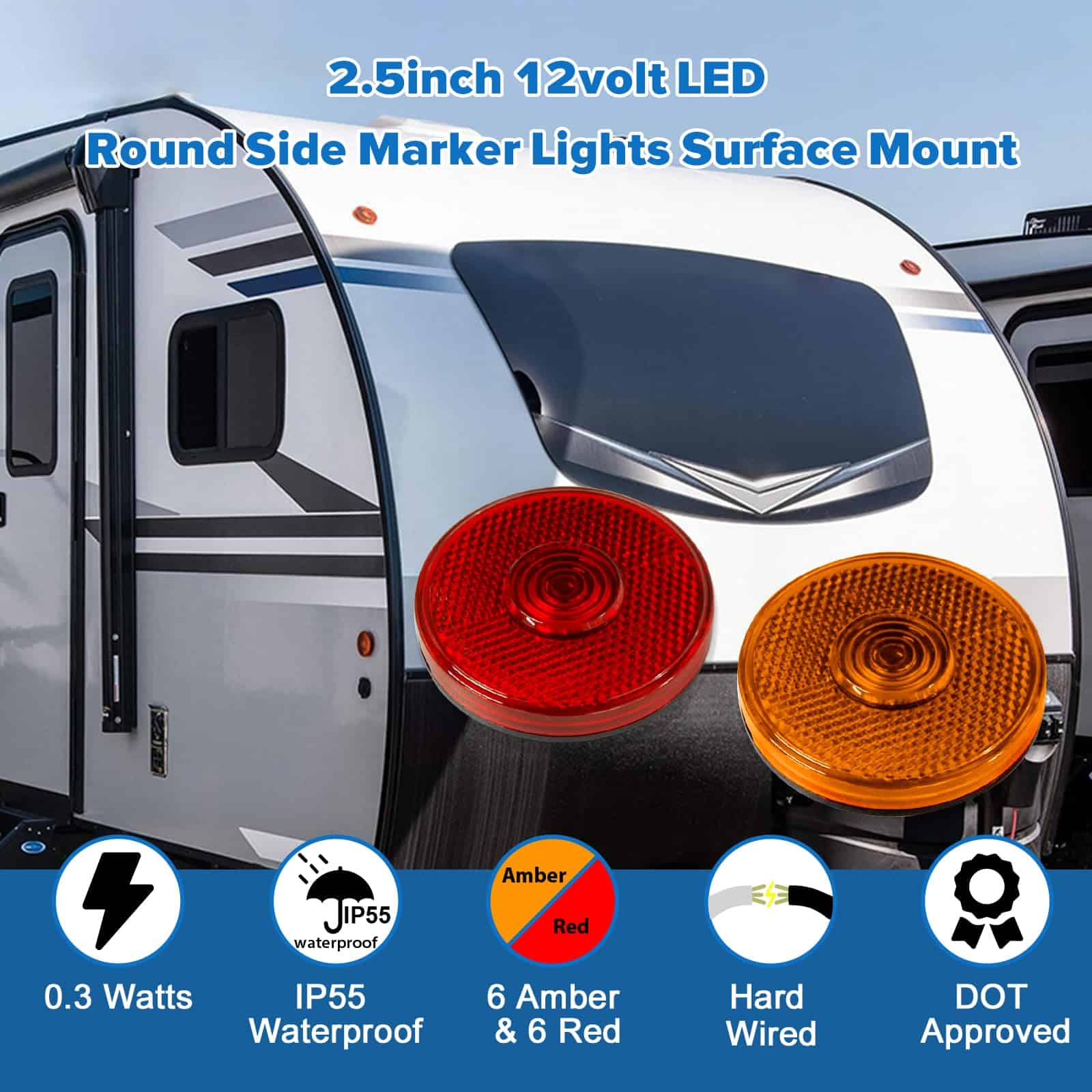 Amplias aplicaciones: esta luz LED lateral redonda de 2.5 pulgadas de 12V DC Dream Lighting se puede utilizar como luz de claridad, luz indicadora lateral y luz de identificación para una variedad de vehículos de 12 voltios DC, incluidos RV, remolques, pickups, camiones, camiones, automóviles, autobuses, barcos, etc. Consumo de corriente mínimo: esta luz LED consume muy poca corriente y es muy ahorradora de energía, lo que la hace ideal para un uso prolongado. Resistente y duradero: con su carcasa y lente de primera clase hechas de materiales PC, esta luz indicadora lateral es resistente al agua, al polvo y a la humedad, lo que la hace adecuada para su uso tanto en interiores como en exteriores. Fácil instalación: diseñada para montaje en superficie, la instalación de esta luz es rápida y sencilla. Tenga en cuenta que los tornillos de montaje no están incluidos en la compra. Diseño atractivo: este paquete incluye 6 luces ámbar y 6 luces rojas, 12 accesorios de iluminación en total, lo que le permite una amplia gama de opciones de instalación. Cumple con las normativas de seguridad: aprobado por el DOT, esta luz indicadora lateral viene con una garantía de un año para su tranquilidad.