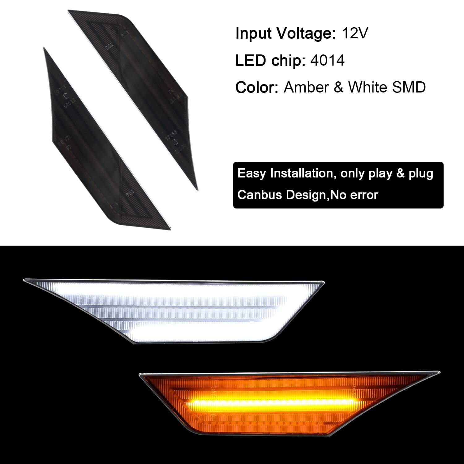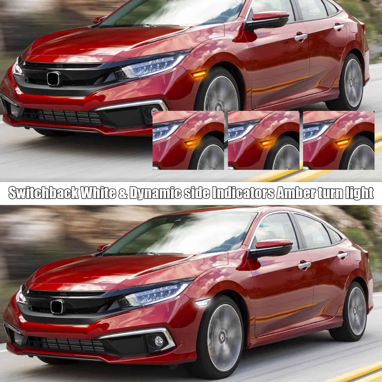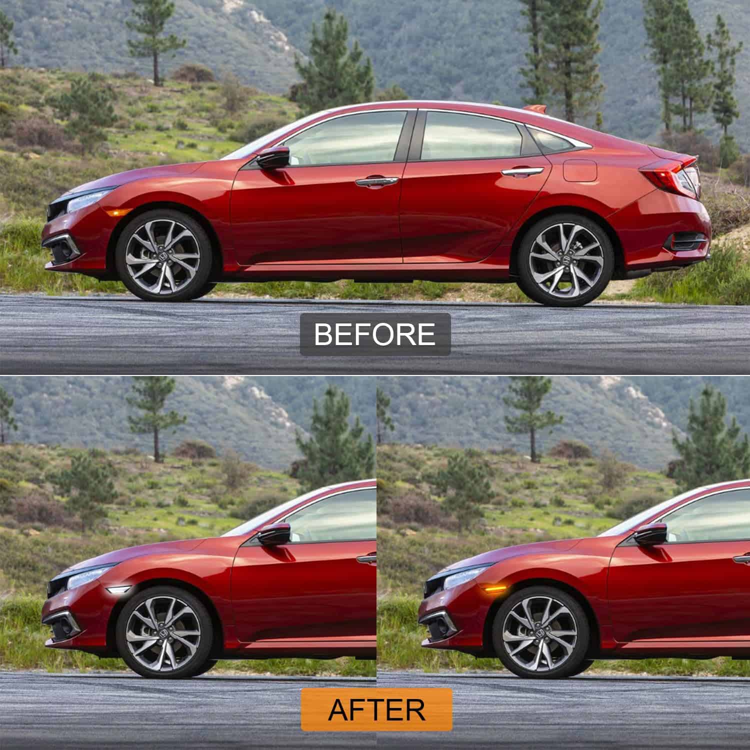 1. DISEÑO A MEDIDA: estas luces laterales LED para Honda Civic son una mejora OEM. Compatible con 2016 2017 2018 2019 2020 2021 Todos los Modelos de Honda Civic de 10th Gen (coupé de 2 puertas / sedán de 4 puertas / hatchback de 4 puertas). Reemplace la pieza OEM 33800TBAA01, 33800-TBA-A01, 33800TBAA02, 33800-TBA-A02, 33850TBAA01, 33850-TBA-A01, 33850TBAA02, 33850-TBA-A02; Reemplace Partslink HO2550127, HO2551127. 2. LED COMPLETO: reemplace las luces naranjas OEM. La luz flexible del tablero lateral LED para Honda Civic con lente ahumada también se puede contornear para darle el aspecto exacto que está tratando de lograr. Utilice los ajustes de luces de circulación, señales de giro, luces de emergencia y luces de cortesía para hacer que su automóvil se destaque en la carretera. Definitivamente una manera genial de mantener el tema todo negro. 3. CONECTAR Y LISTO: estos indicadores laterales LED de Honda Civic son un reemplazo plug-and-play para las luces de guardabarros de fábrica, el kit de luces indicadoras LED laterales está diseñado para funcionar sin modificaciones. Se conectarán a los conectores de fábrica. Sin códigos de error, sin parpadeos, sin parpadeo excesivo o interferencia de radio. 4. MATERIAL DE ALTA CALIDAD E IMPERMEABLE: Luz Indicadora Lateral Honda Civic hecha de carcasa de plástico ABS y lente de PC, anticorrosión, antiherrumbre y antirrayas, prolonga la vida útil en más de 5,000 horas, el material impermeable protege las luces indicadoras laterales LED del guardabarros contra la arena y la lluvia. 5. PAQUETE QUE INCLUYE: 2PCS luces indicadoras LED delanteras y garantía sin preocupaciones de 18 meses con servicio al cliente amigable.