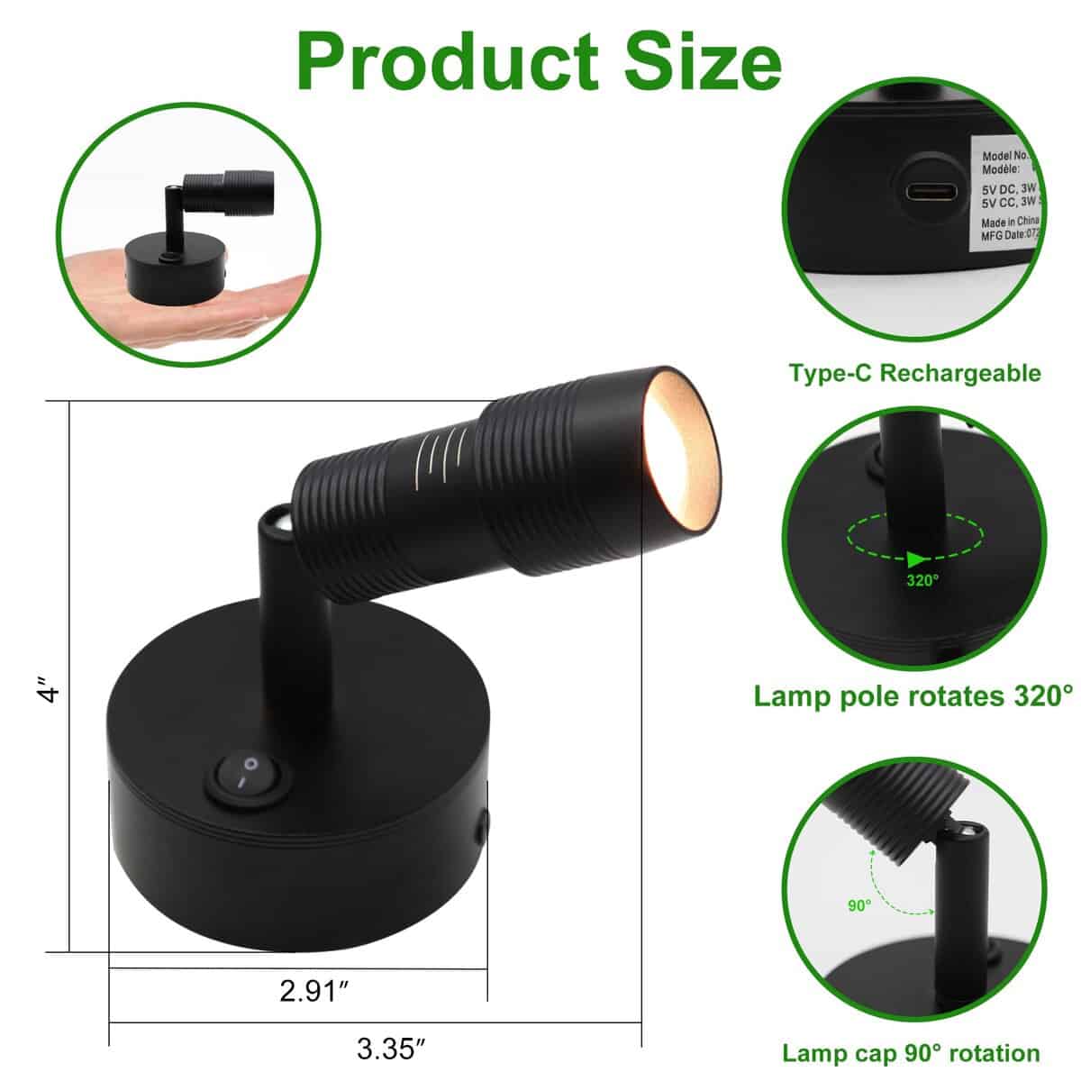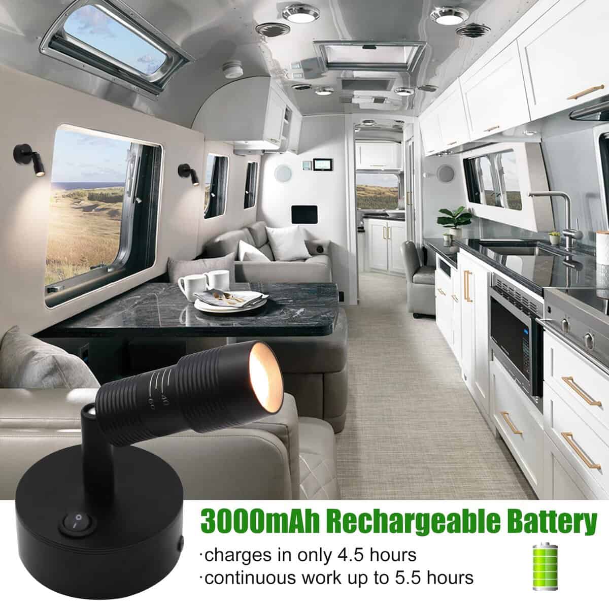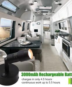 Luces interiores Homdec para RV con batería – Foco LED recargable ajustable con zoom de 3500K & 15�-60�. Diseño compacto e inalámbrico que se mide solo 4 x 3.35 x 2.91 pulgadas, esta luz LED recargable sin cables es pequeña, ligera y fácil de almacenar, lo que la hace perfecta para Rvs, campers o cualquier necesidad de iluminación sobre la marcha. Obtenga 5.5 horas de luz continua y recarga rápida a través del puerto USB-C moderno, se energiza mientras conduce al campamento o atraca su barco. Con un simple interruptor de encendido/apagado y un diseño compacto y portátil, esta luz es fácil de posicionar y utilizar donde sea que la necesite, ya sea para leer, realizar tareas o iluminación ambiental. Construido con una construcción resistente y tecnología LED ecológica, este foco Homdec es una solución de iluminación duradera y de larga duración que mejora su experiencia en RV o camper mientras conserva energía.