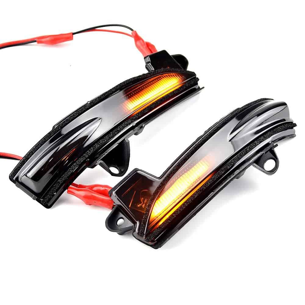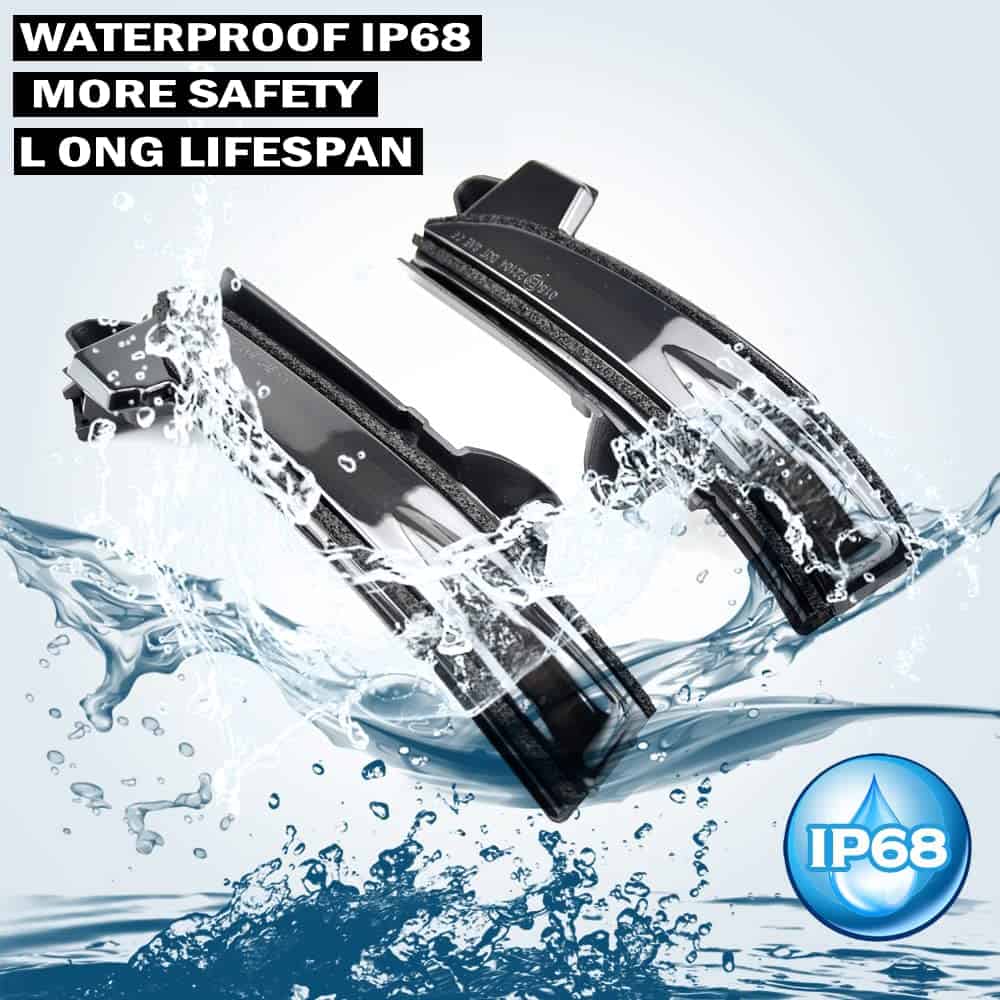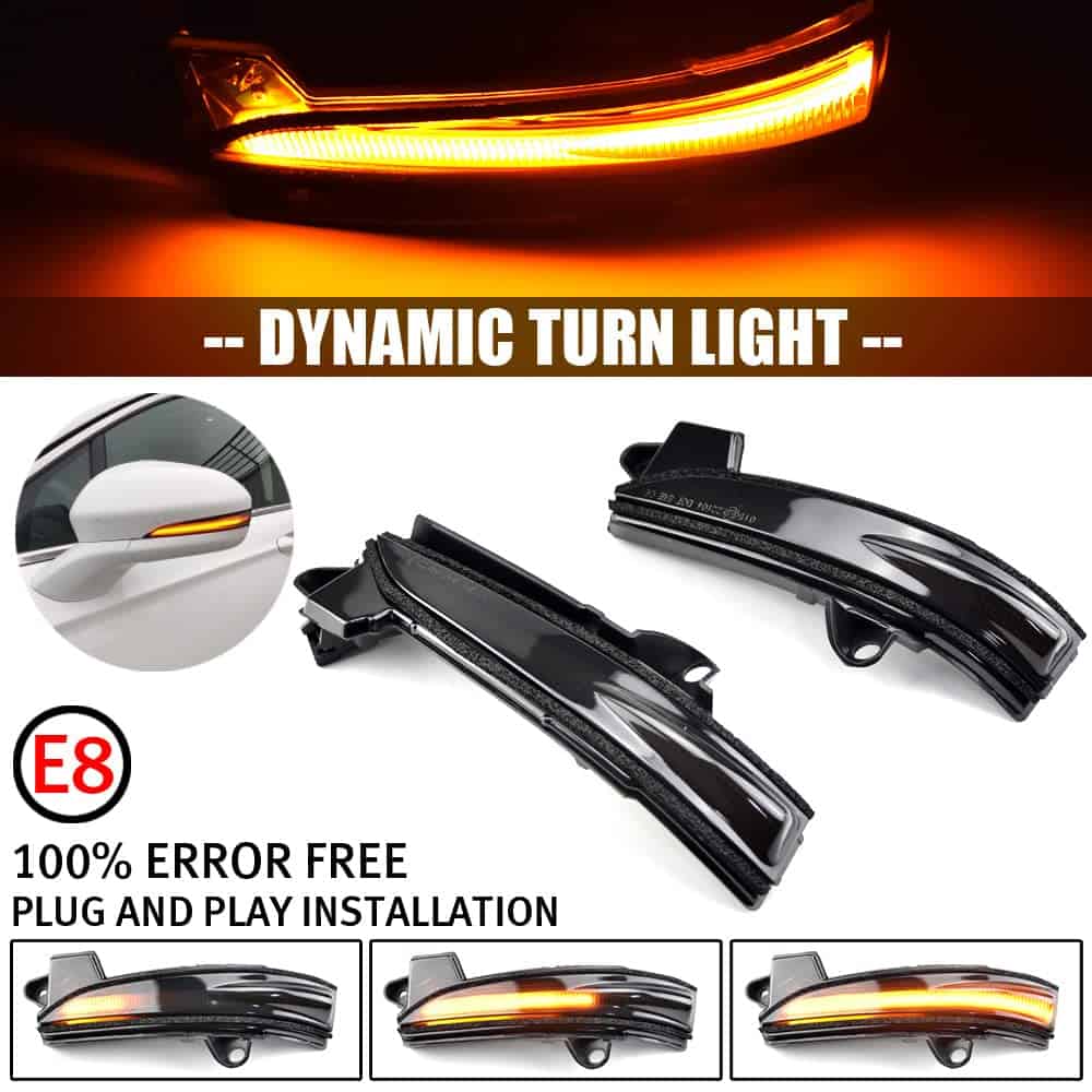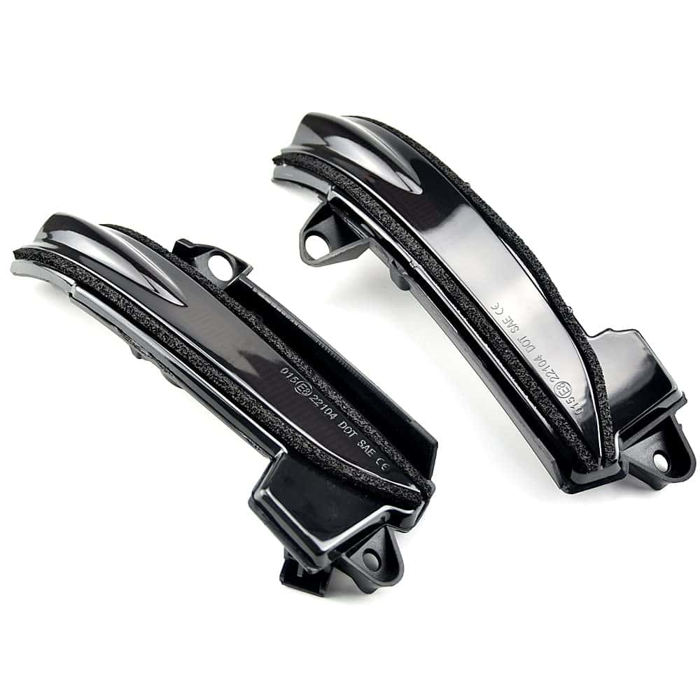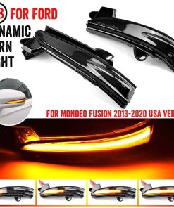 Compatible con Ford Fusion 2013-2020. Luces de espejo lateral hechas de lente de PC y carcasa de plástico ABS con diseño sellado, resistente al agua IP67. Diseño dinámico/secuencial de destello, lente ahumada y modo secuencial. Plug and play, sin necesidad de modificaciones.