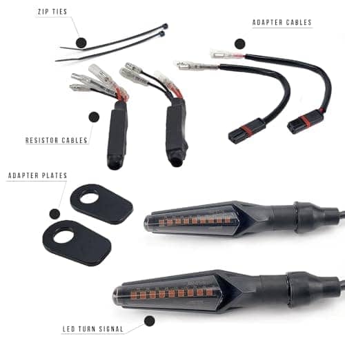 Contenido del kit completo: Es todo plug and play: Luces intermitentes LED Aharon + Adaptadores de montaje + Adaptadores de cable + Bridas + Tapas de goma