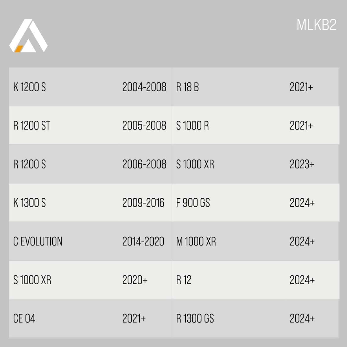 Para comprobar la compatibilidad, consulta la tabla a continuación. Si tu moto no aparece en la lista, consulta nuestros otros kits para esta marca.