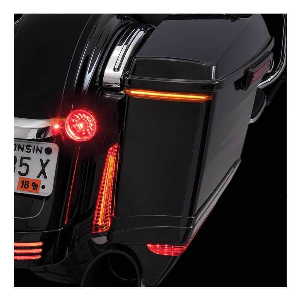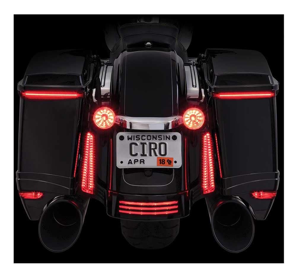 Las luces LED BAG BLADES de Ciro son una de las formas más limpias de agregar luz a la parte trasera de tu motocicleta. El diseño de perfil bajo se coloca justo debajo de la tapa de tu bolso para integrarse perfectamente en la parte trasera de la moto. Las luces BAG BLADES LED cuentan con luces rojas de marcha, freno y intermitentes secuenciales ámbar para asegurarte de que seas visto de día o de noche.