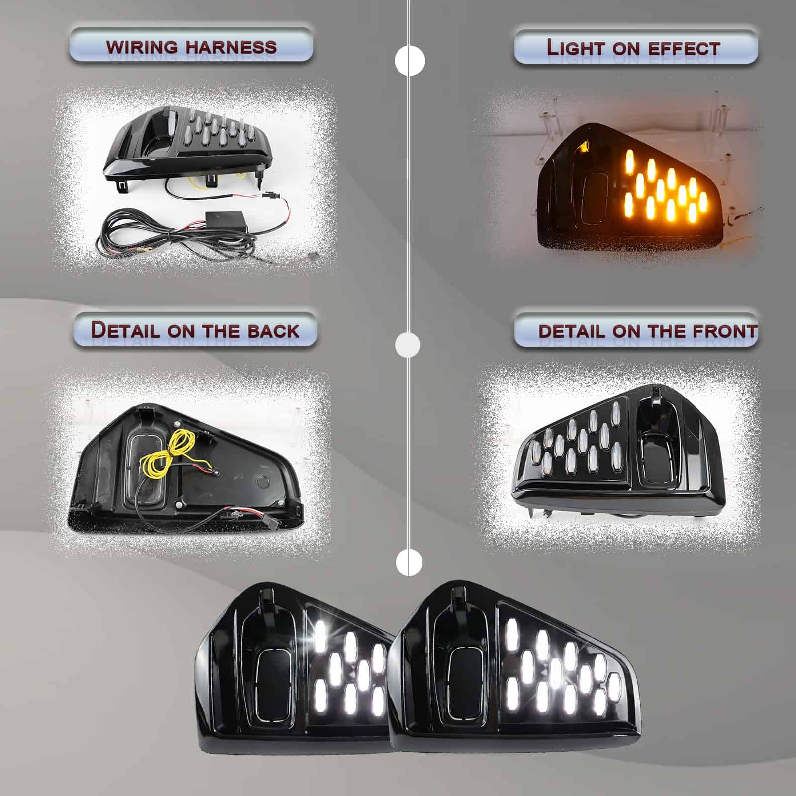 Luces LED diurnas con diseño de luz diurna y señal de giro integrada. Bicolor con colores blanco, ámbar y azul, estas luces también pueden usarse como luces de giro al activar la izquierda o la derecha; las luces de señalización DRL LED cambian a blanco xenón al desactivar las señales de giro. El blanco se vuelve azul al encender los faros. Tratamiento de oxidación en la superficie para una apariencia agradable con buena resistencia a la vibración, impermeabilidad y resistencia a la corrosión. Estilo OEM con reemplazo directo que ofrece un salto de seguridad decisivo en el tráfico y ayuda a prevenir accidentes. Compatible con Nissan 2021 2022 KICKS S SR SV para la actualización de las luces de niebla/DRL.