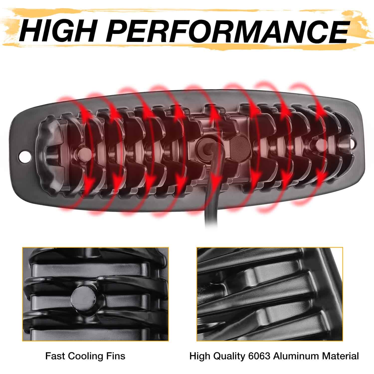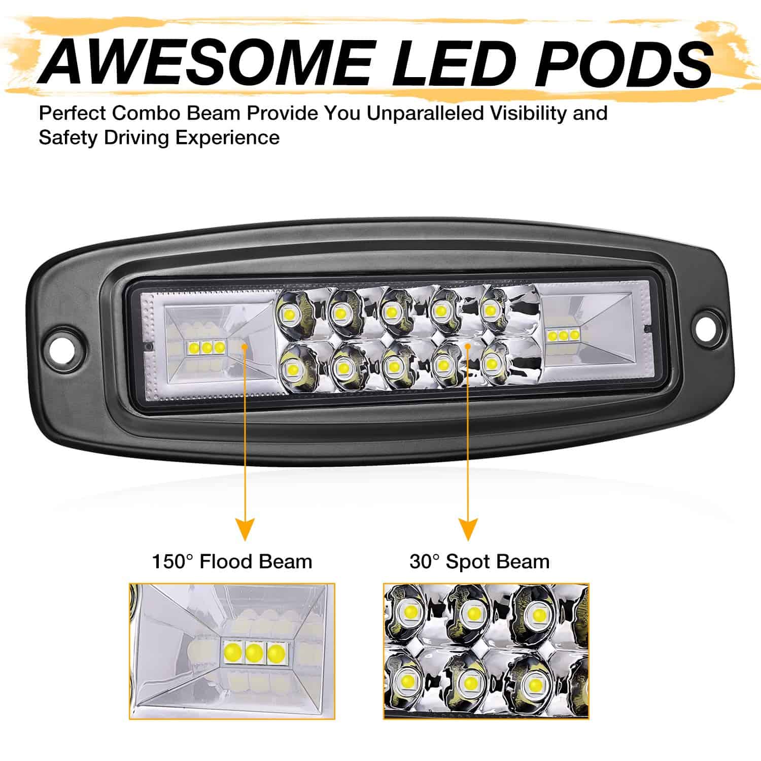 Chips de doble fila, 96 vatios por par con 9,600 lúmenes, las luces LED son mucho más brillantes y alcanzan más lejos.