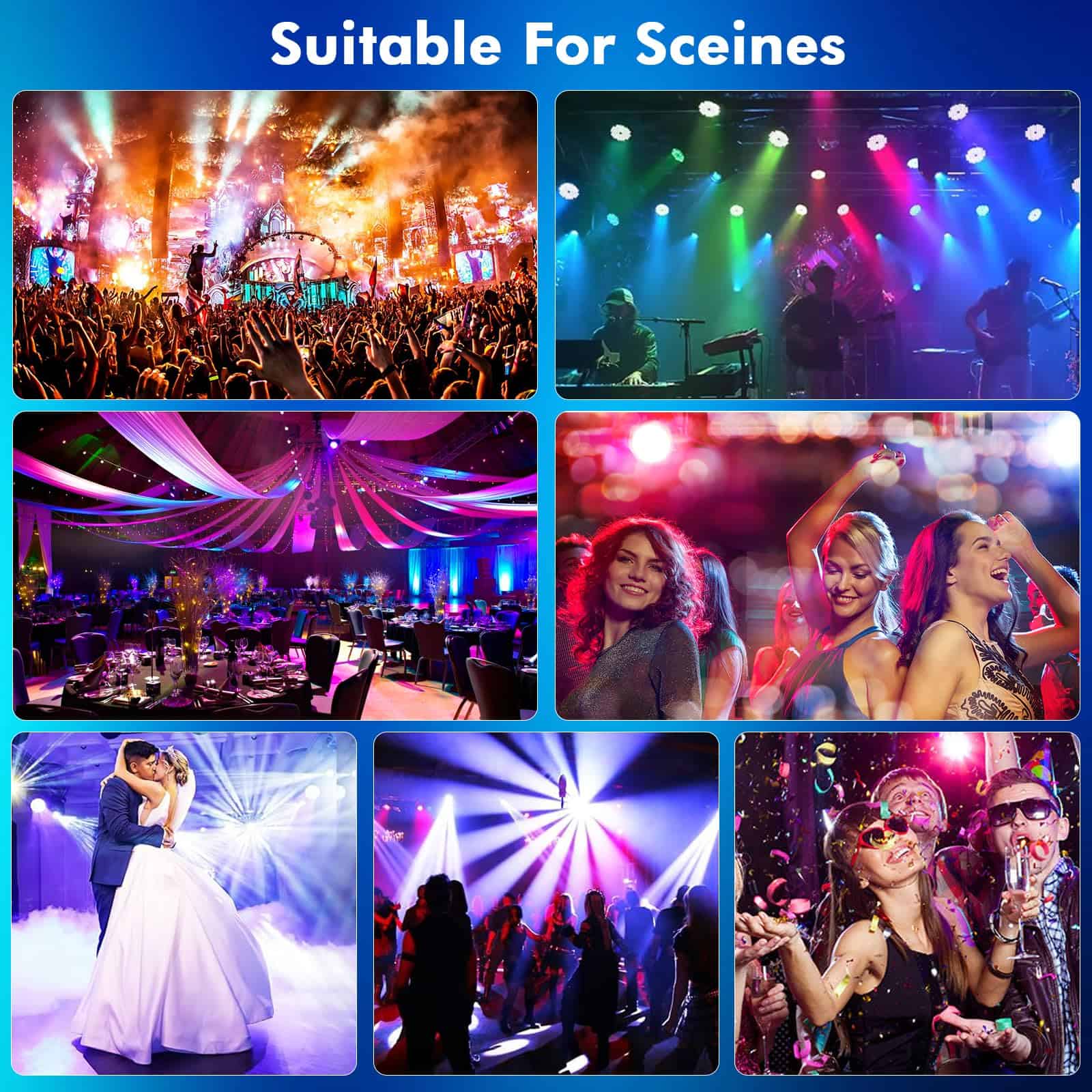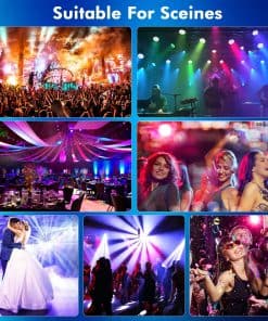 6. AMPLIO USO PARA MUCHAS OCASIONES: Las luces de escenario cuentan con 2 asas que son más fáciles de instalar en el techo, paredes, piso y escritorio con ángulo ajustable. Ideal para Karaoke, Salón de baile, KTV, Pub, Teatro, Iglesia, Club, Bar, Centro comercial, J-show, Halloween, Navidad, Boda en casa, celebración interior de baile.