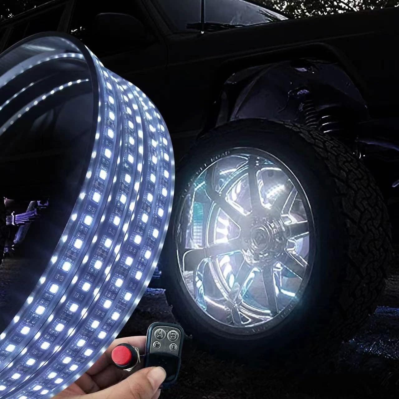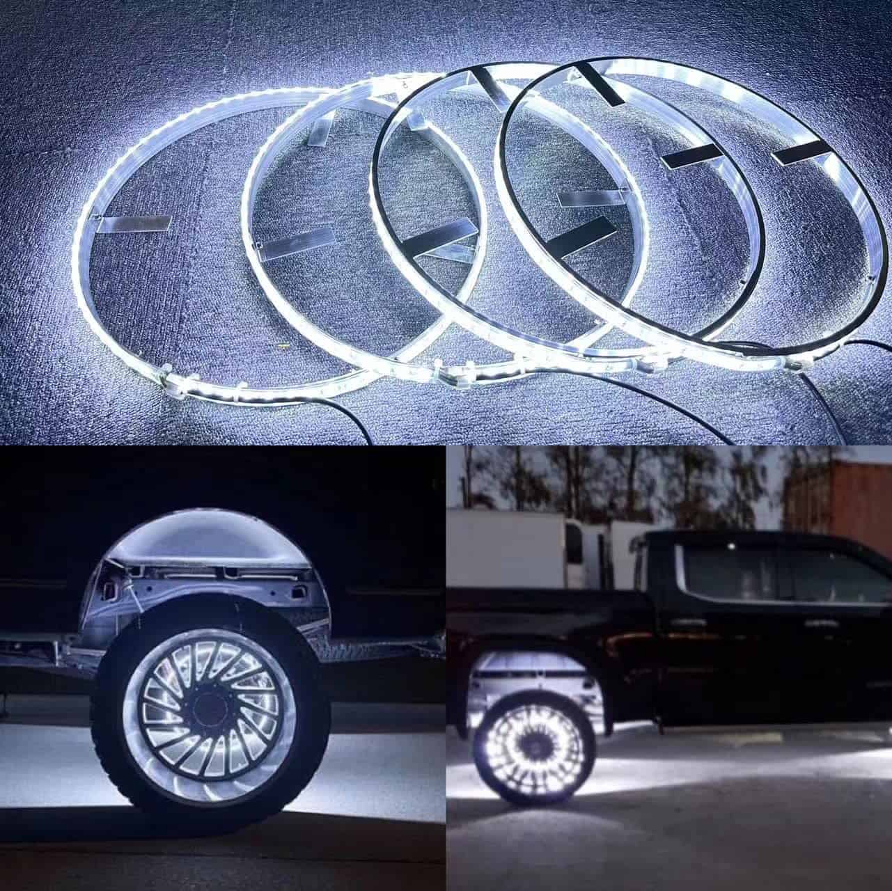 Lleve la iluminación de sus llantas al siguiente nivel con estas luces de anillo de llanta LED. El paquete incluye 4 luces de anillo de llanta, 4 juegos de cables con interruptor balancín, 20 pies para cada rueda, control remoto, tornillos y manual de instalación.