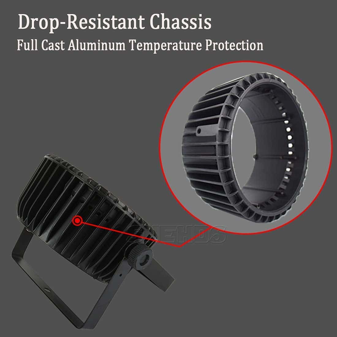 4. Vida útil larga y Apariencia Exquisita – Estas luces de lavado tienen una apariencia resistente y exquisita. Con carcasa de aluminio fundido resistente a impactos, ventilador de enfriamiento incorporado para una vida útil prolongada. Los LEDs de larga duración podrían durar más de 60,000 horas.