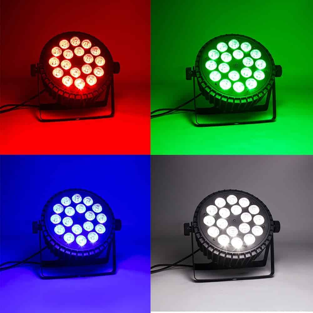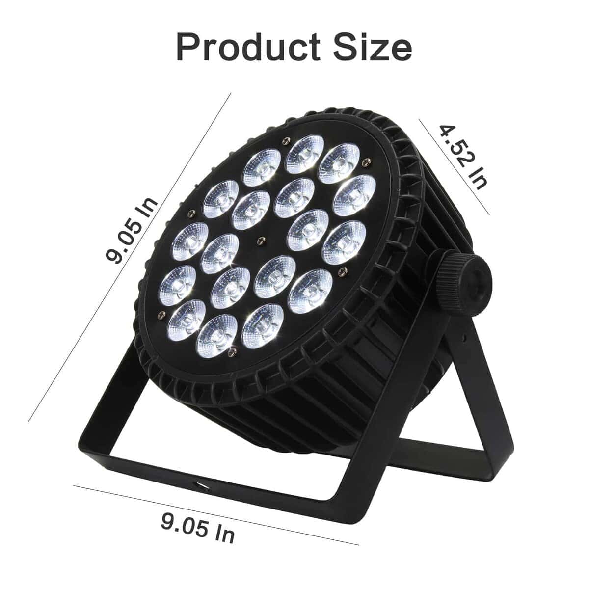 2. Luces LED de Escenario de Alta Calidad – Rechazamos bombillas baratas, adoptamos LED de alta calidad para hacer una fuente de luz de lujo. 12 vatios para cada LED, total de 216W 18 LEDs RGBA luces par can, control individual de LEDs rojos, verdes, azules y blancos.