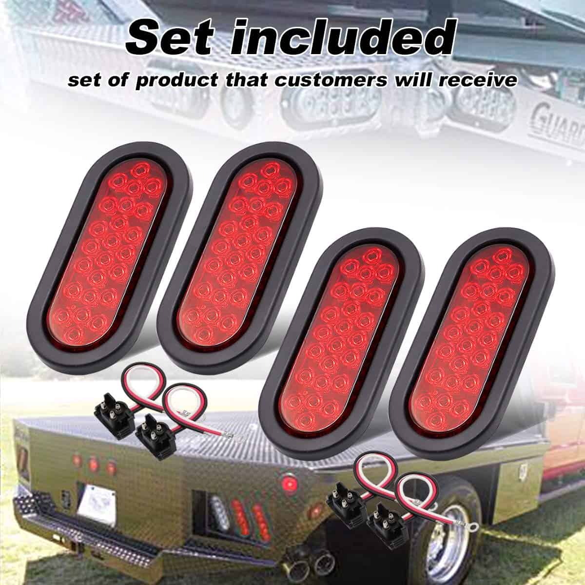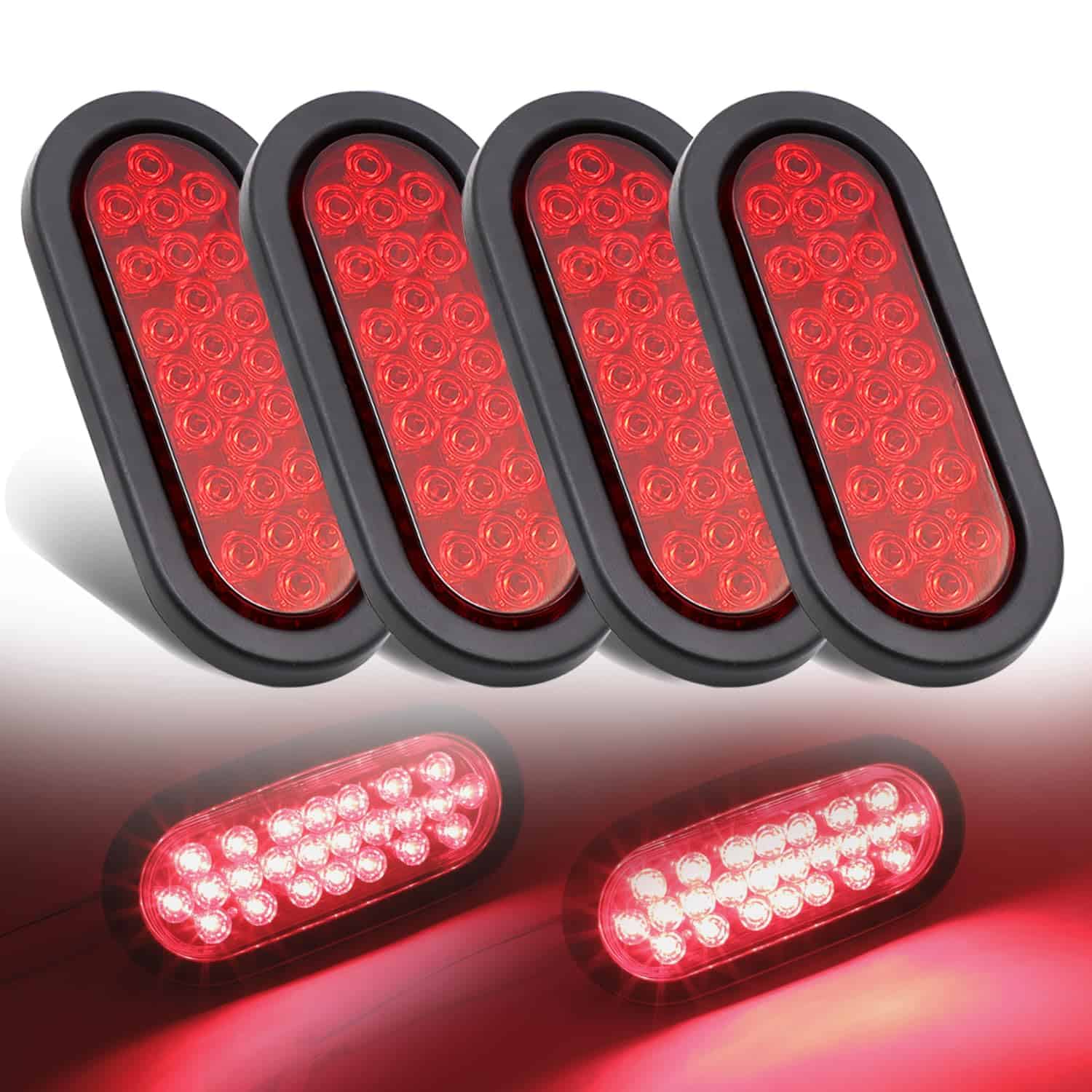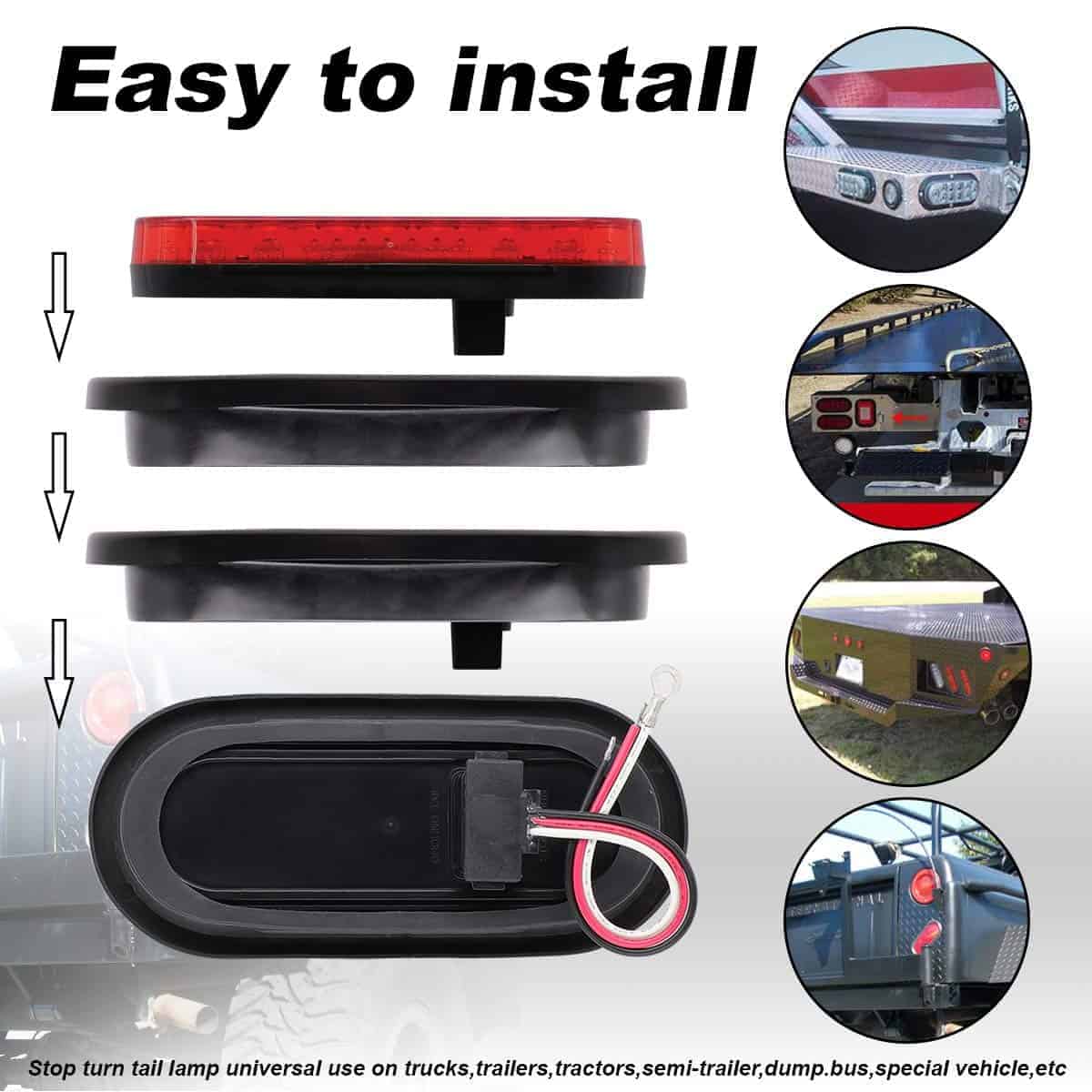 Luces marcadoras laterales ovales de 6 pulgadas con 24 LED en color rojo para remolques, camiones, caravanas, tractores, autobuses, semirremolques, volquetes, barcos, campistas, Jeeps, RVs, etc. Las bombillas se pueden utilizar como luz de remolque, luz intermitente, luz de giro, luz trasera, luz de emergencia; Compatible con la mayoría de vehículos de 12v DC. Conector estándar de la industria con cableado de 10.5 pulgadas y 3 pines; el Negro es positivo para la luz trasera, el Rojo es positivo para la luz de freno, el Blanco es cable a tierra.