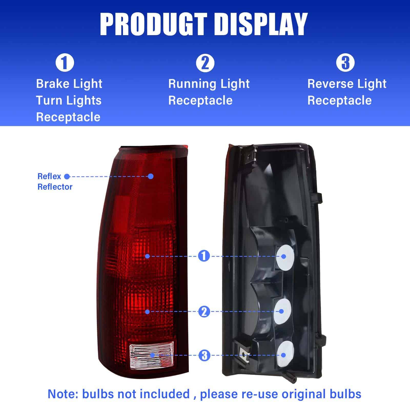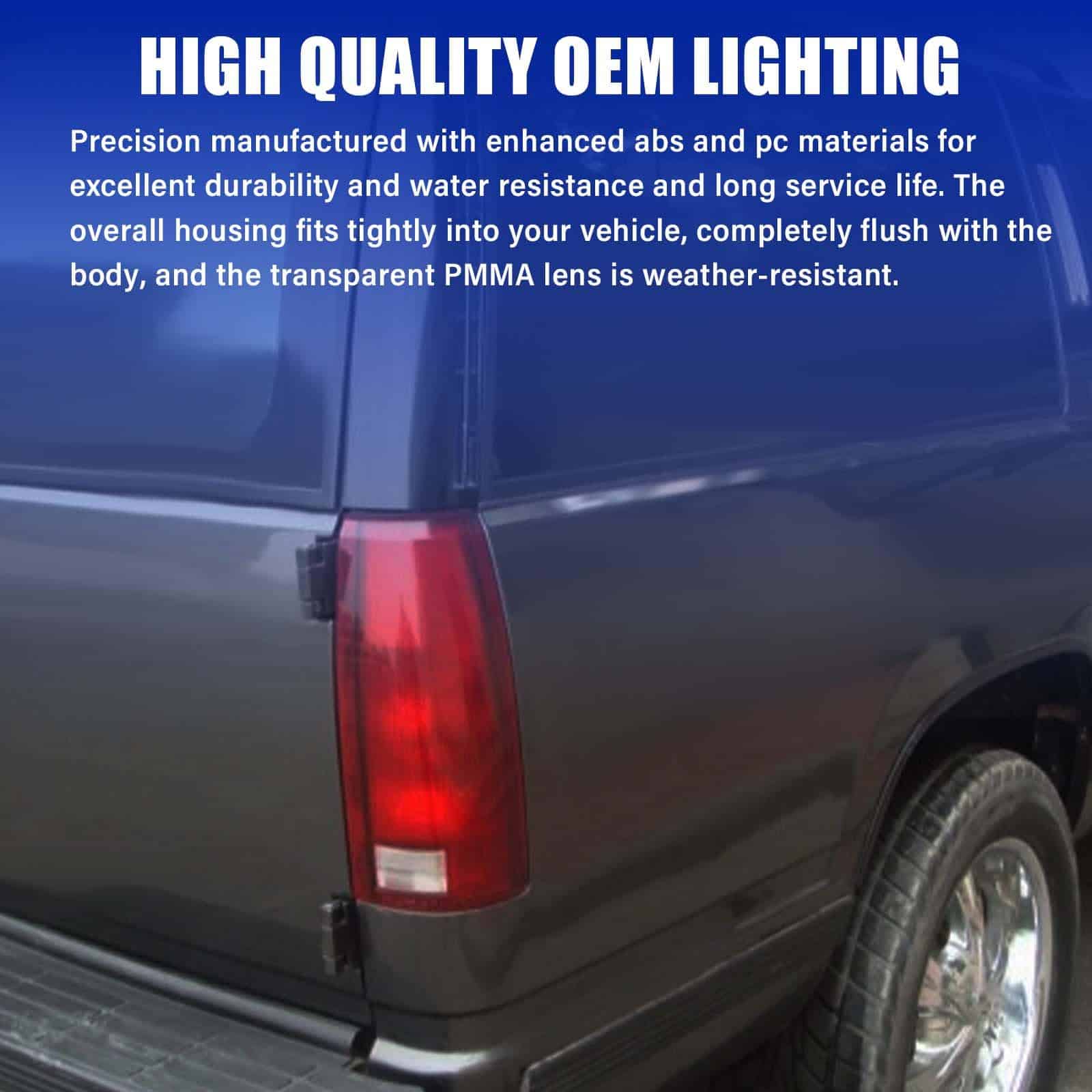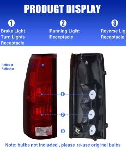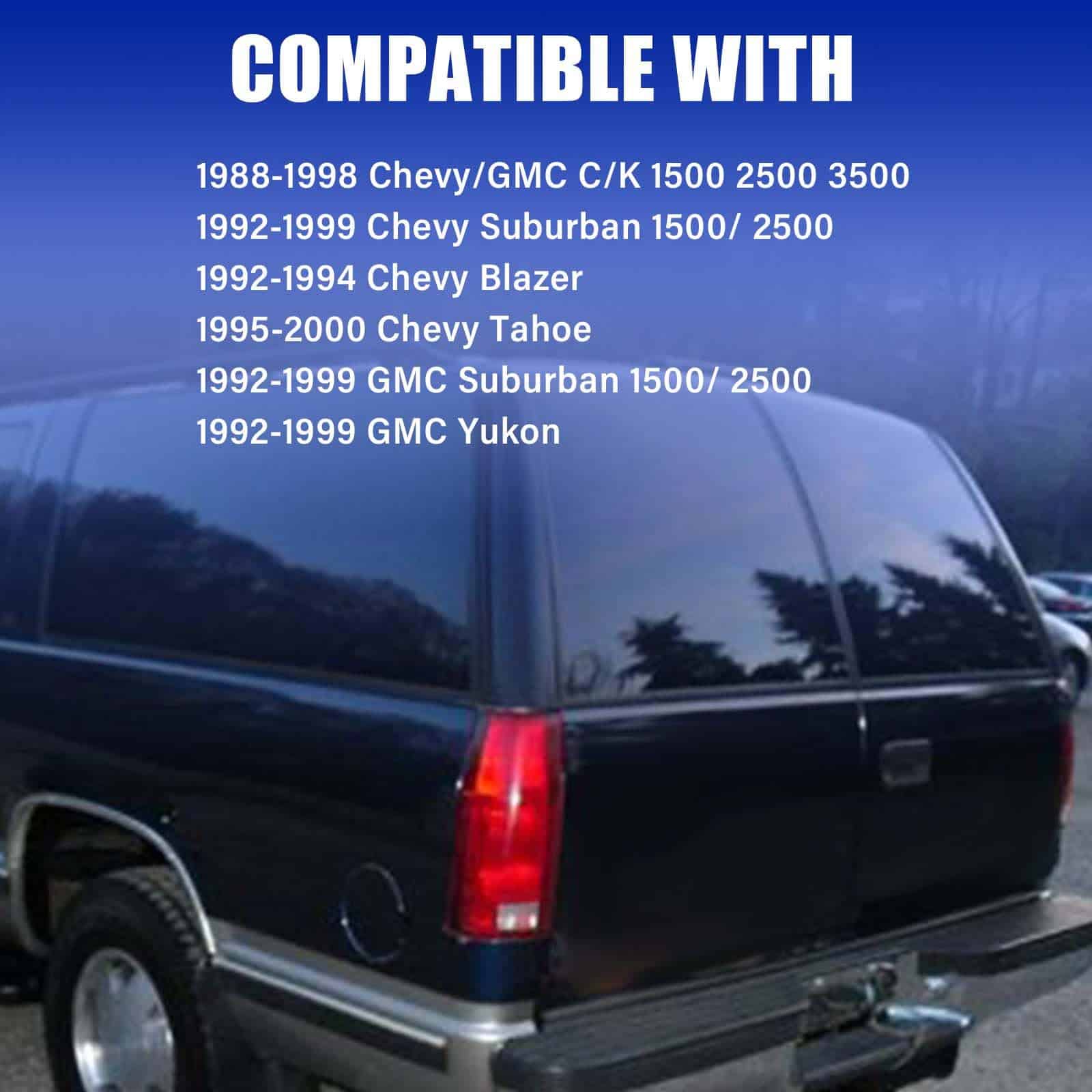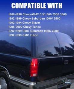 1. COMPATIBILIDAD: Ensamble de luces traseras compatible con Chevy/GMC C/K 1500 2500 3500 1988-1999, Chevy Suburban 1500 2500 1992-1999, Chevy Silverado 1994-1998, Chevy Blazer 1992-1994, Chevy Tahoe 1995-2000, GMC Yukon 1992-1999, GMC Suburban 1500 2500 1992-1999, sin bombilla ni arnés.