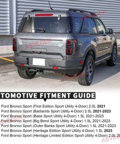 Característica: luces traseras izquierda y derecha de posventa específicas para Ford Bronco Sport 2021-2023 (para Base, Big Bend, Outer Banks, Badlands, First Edition, Heritage Edition, Heritage Limited Edition), versión de SUV compacta Diseño y estilo modernos y elegantes Una excelente manera de mejorar la apariencia de su automóvil exterior Luces LED súper brillantes, mejoran la seguridad al conducir Duradero y larga vida útil Plug and play, no se necesita modificación Resistente al agua y al polvo Especificaciones: Fuente de luz: LED Color de la carcasa: Lente ahumada Material: ABS+PMMA+Aluminio Tasa de resistencia al agua: IP67 Garantía: Un año Paquete incluido: Un par de luces traseras