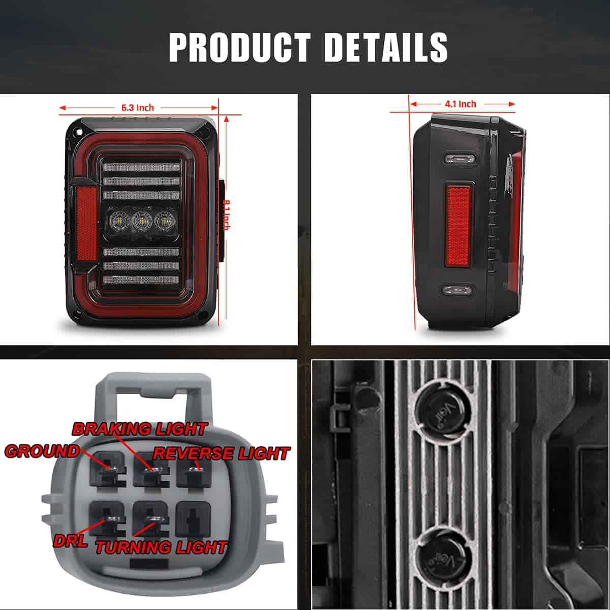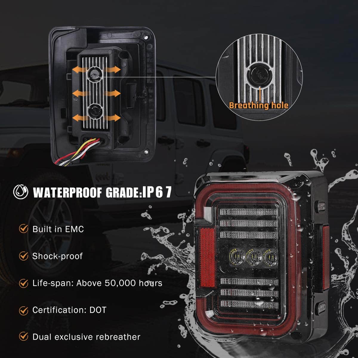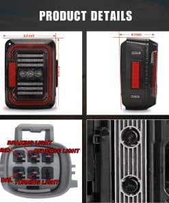 ESPECIFICACIONES: Nombre del producto: Luces traseras LED compatibles con jeep jk jku Voltaje: 9-16V Certificación: DOT Garantía: 12 meses Tasa de impermeabilización: IP 67 Vida útil: 50,000 horas Temperatura de color: 6000K Material de la lente: PC + PMMA COMPATIBILIDAD: Compatible con Jeep Wrangler JK de 2 puertas 2007-2018 Compatible con Jeep Wrangler Unlimited JKU de 4 puertas 2007-2018 PAQUETE INCLUIDO: 2 luces traseras LED 1 manual de instrucciones