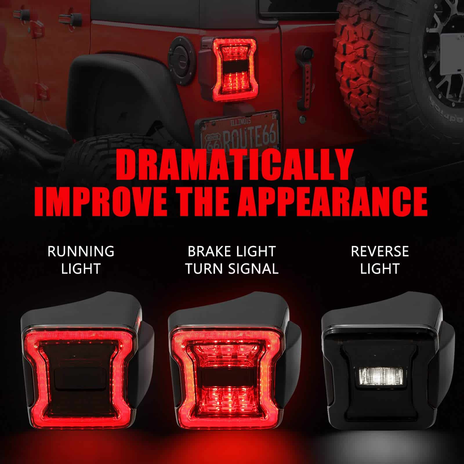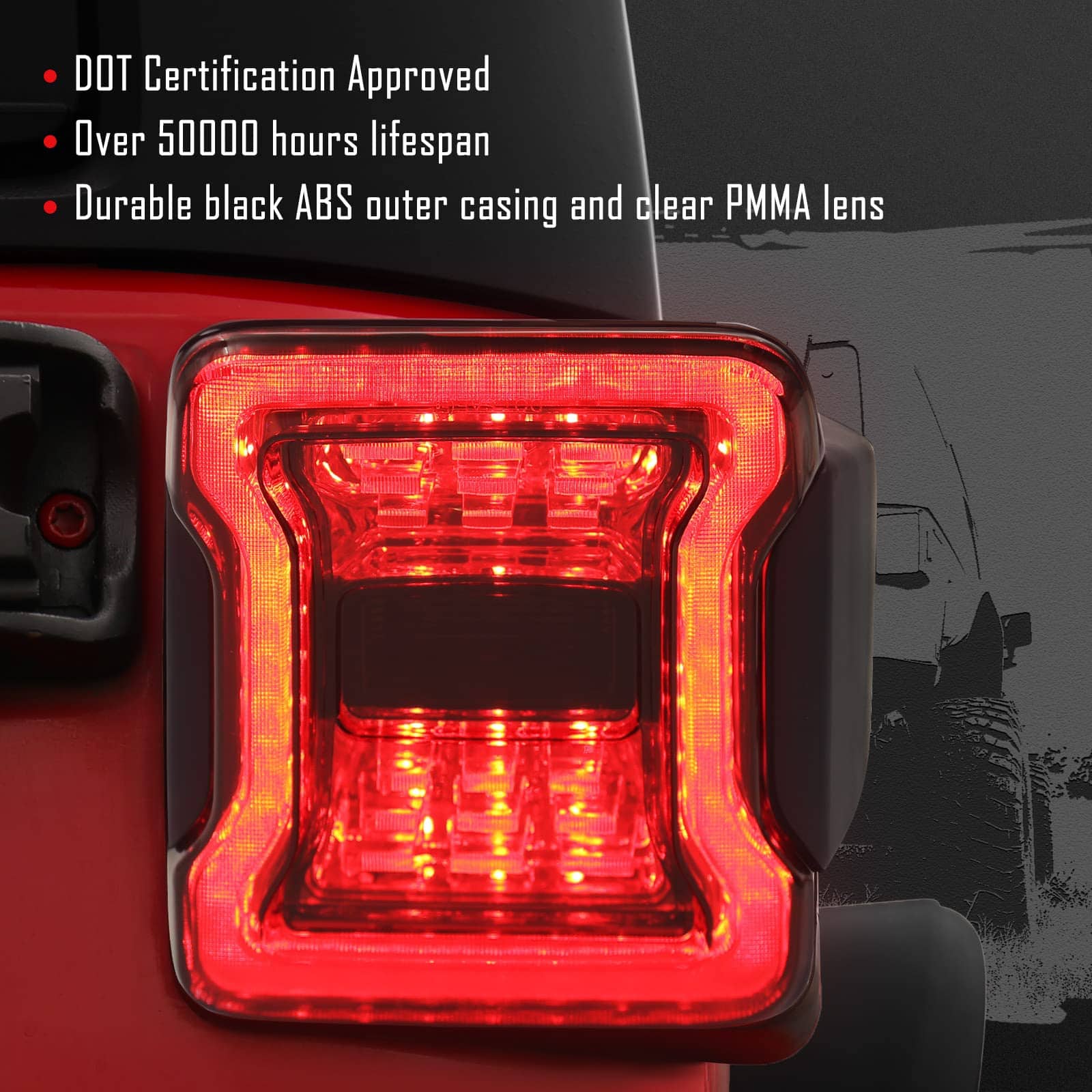 Las luces traseras LED DKMGHT para Jeep Wrangler JK son la mejor manera de mejorar el estilo y rendimiento de su vehículo. Con un diseño de lente 4D que proporciona una respuesta más rápida de encendido / apagado, estas luces son una actualización elegante desde las luces traseras OEM de JL. Aprobadas por el DOT, cuentan con chips Led 3535 de alto rendimiento fabricados en Taiwán que consumen menos energía que las bombillas de fábrica, lo que garantiza una vida útil de más de 50000 horas. Su instalación es fácil y rápida, ya que están diseñadas como Plug & Play, solo necesita atornillarlas. Son compatibles con Jeep Wrangler JK JKU de 2 puertas / 4 puertas de los años 2007 a 2018. DKMGHT se enorgullece de ofrecer productos de calidad y proporciona una garantía de 365 días para su tranquilidad. Si experimenta cualquier problema con las luces, no dude en contactarnos para una solución rápida y efectiva. ¡Mejora tu Jeep Wrangler JK con las luces traseras LED DKMGHT y experimenta un nuevo nivel de estilo y rendimiento!