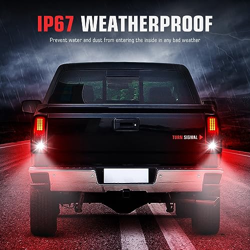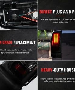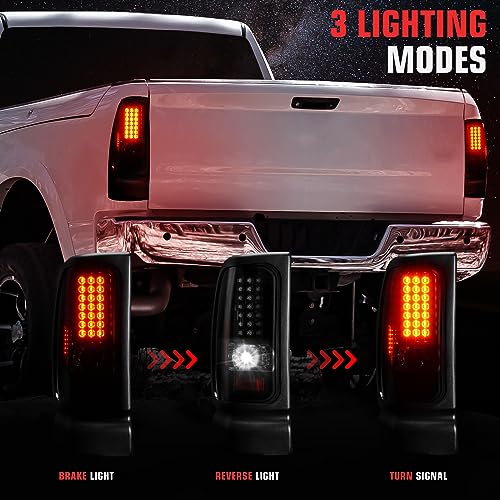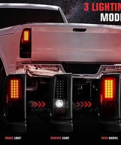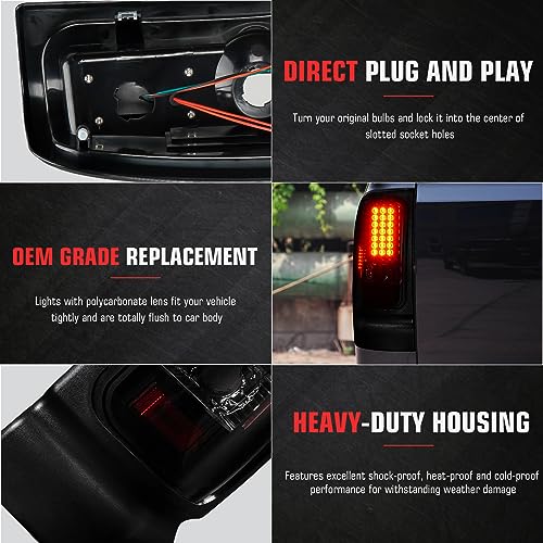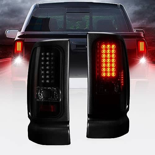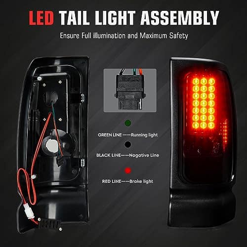 Luces Traseras LED para Ram 1500 1994-2001, Ram 2500 3500 1994-2002, Juego de Lámparas Traseras de Freno de Humo. Estas luces traseras LED son compatibles con una variedad de modelos de vehículos Dodge Ram y ofrecen una instalación rápida y sencilla sin necesidad de modificaciones. Proporcionan una funcionalidad todo en uno que incluye luz de marcha, luz de freno, intermitentes y luz de reversa (bombillas no incluidas). Además, estas luces traseras no solo mejoran la visibilidad trasera de su vehículo para otros conductores y pasajeros, sino que también añaden un toque de estilo con su diseño ahumado. Este juego incluye un par de luces traseras, una para el lado del conductor y otra para el lado del pasajero, para una mejora completa de la iluminación de su vehículo.