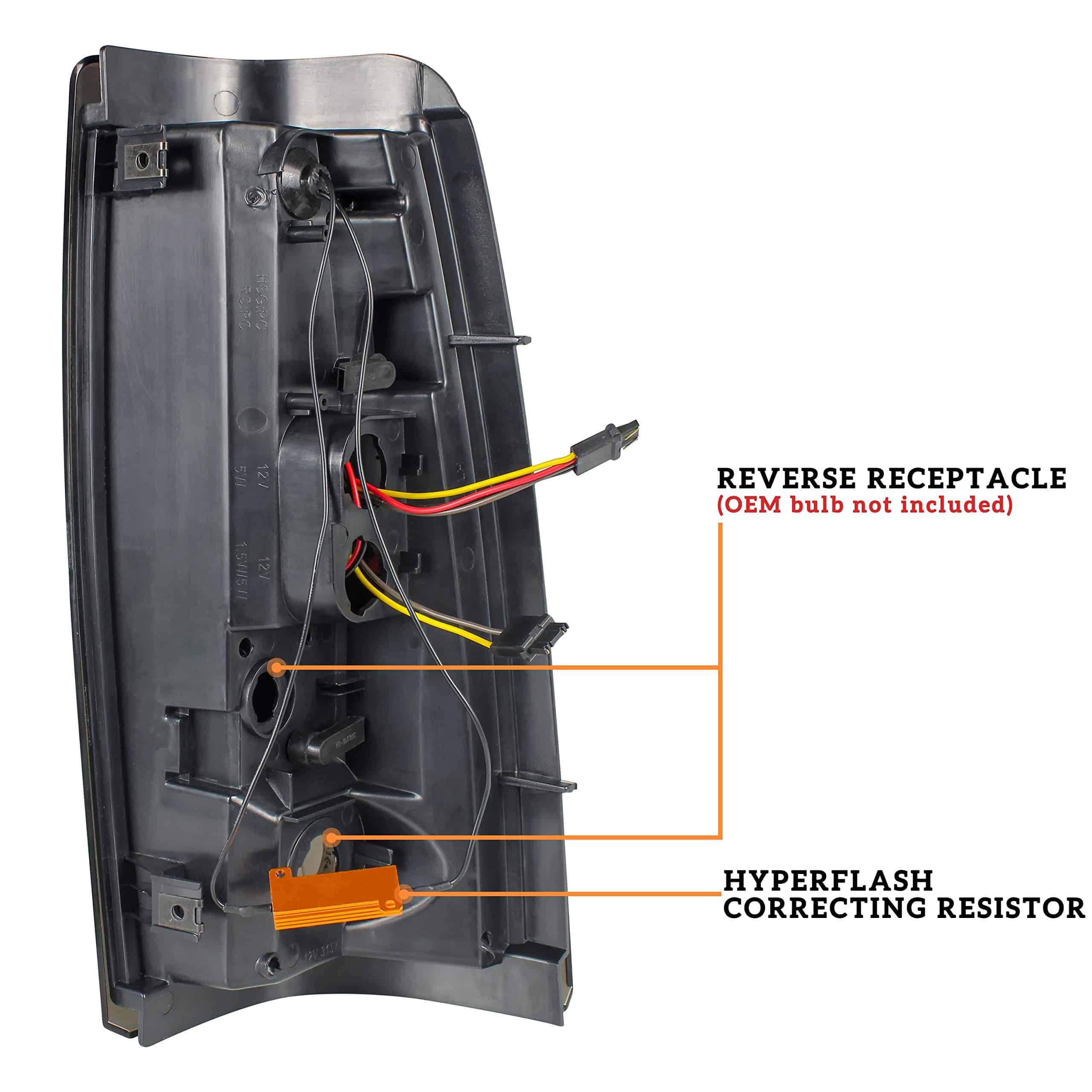 5. Fácil de instalar, Plug & Play; El paquete incluye: 2 luces traseras ahumadas en negro con hardware de montaje. NOTA: BOMBILLA OEM NO INCLUIDA; (Coloque la resistencia en el marco de hierro para evitar romper la superficie de la carcasa de la lámpara a alta temperatura)