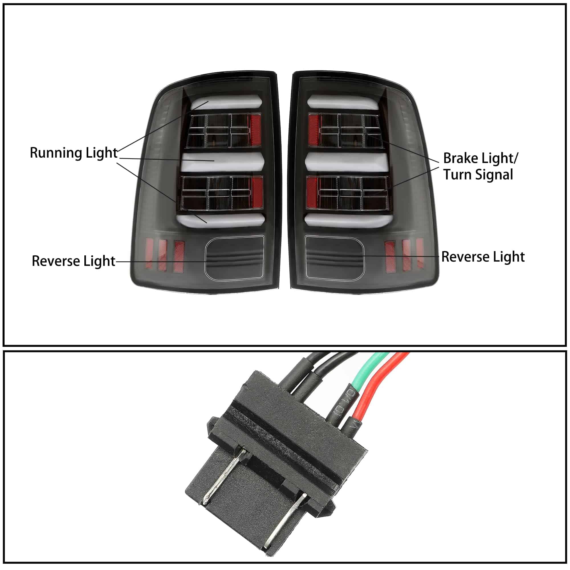 1. Compatible con los modelos Dodge Ram 1500 del 2009-2018, Dodge RAM 1500 Classic del 2019-2021, y los modelos Dodge Ram 2500/3500 del 2010-2018 únicamente. (No sirve para modelos del 2013-2018 con luces traseras LED de fábrica).