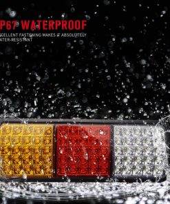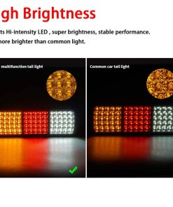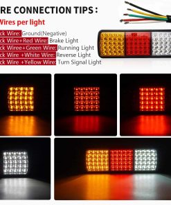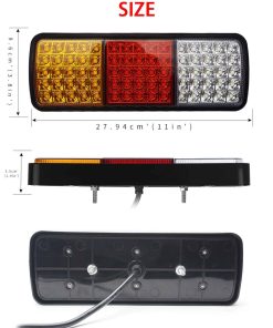 COMPATIBILIDAD: Compatible con cualquier vehículo con sistema DC12V, Ideal para camiones, remolques, tractores, semirremolques, volquetes, vehículos especiales, etc. CARACTERÍSTICAS: Instalaciones de gama alta; Súper luminosidad; Ahorro de energía; Impermeable; Vida útil larga.ESPEFICACIONES.Tipo de artículo: Luz trasera LED impermeable / Luz trasera / luces de remolque de camión Tipo de artículo: Luces de cola del trailer del camión Tamaño del producto: 11×3.8×1.4 pulgadas por pieza Peso: 509g / pieza Voltaje: 12V Clasificación impermeable: IP67 Material: carcasa de ABS + lente de PC Vida útil: más de 50000 (horas) Número de LED: 75 piezas Paquete Incluyendo: 2 x Lámparas de parada / giro / cola / marcha atrás de camión remolque / luces (se venden en par) Esta luz trasera LED se puede usar como luz de señal de giro, luz de retroceso, luz de freno, luz de parada, luz de circulación, lámpara de luz intermitente y así sucesivamente, lo que es más conveniente para su conducción.INSTALACIÓN FÁCIL: ¡(Se recomienda encarecidamente la instalación profesional para evitar problemas causados por un instalador inexperto!)INSTRUCCIÓN DE CONEXIÓN: sistema de conexión de 5 cables de colores para Negativo, Luz de señal de giro, Luz de freno, Luz de circulación y luz de marcha atrás. Cable negro – Negativo Cable rojo – Luz de freno Cable verde – Luz de circulación Cable amarillo – Luz de señal de giro Cable blanco – Marcha atrás.