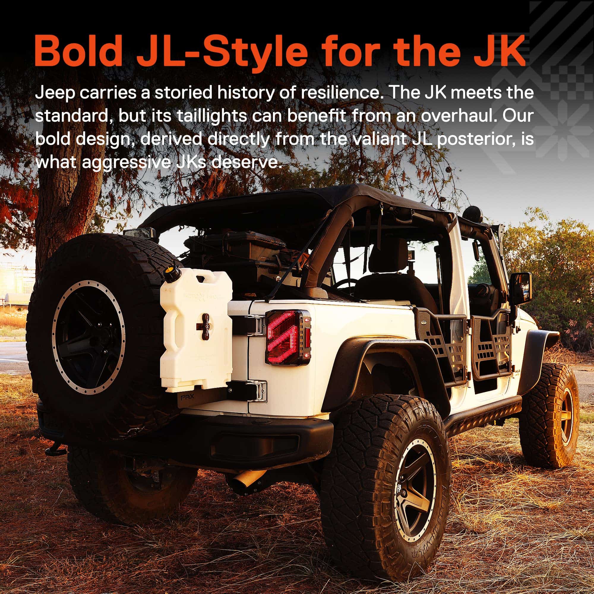 BOLD JL-STYLE FOR THE JK – Wrangler carries a storied history of resilience. The JK meets the standard, but its taillights can benefit from an overhaul. Our bold design, derived directly from the valiant JL posterior, is what aggressive JKs deserve.