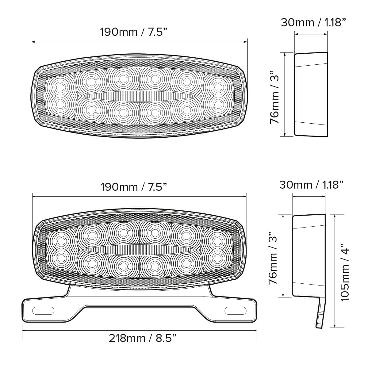 Luces traseras para remolque de RV con soporte para
