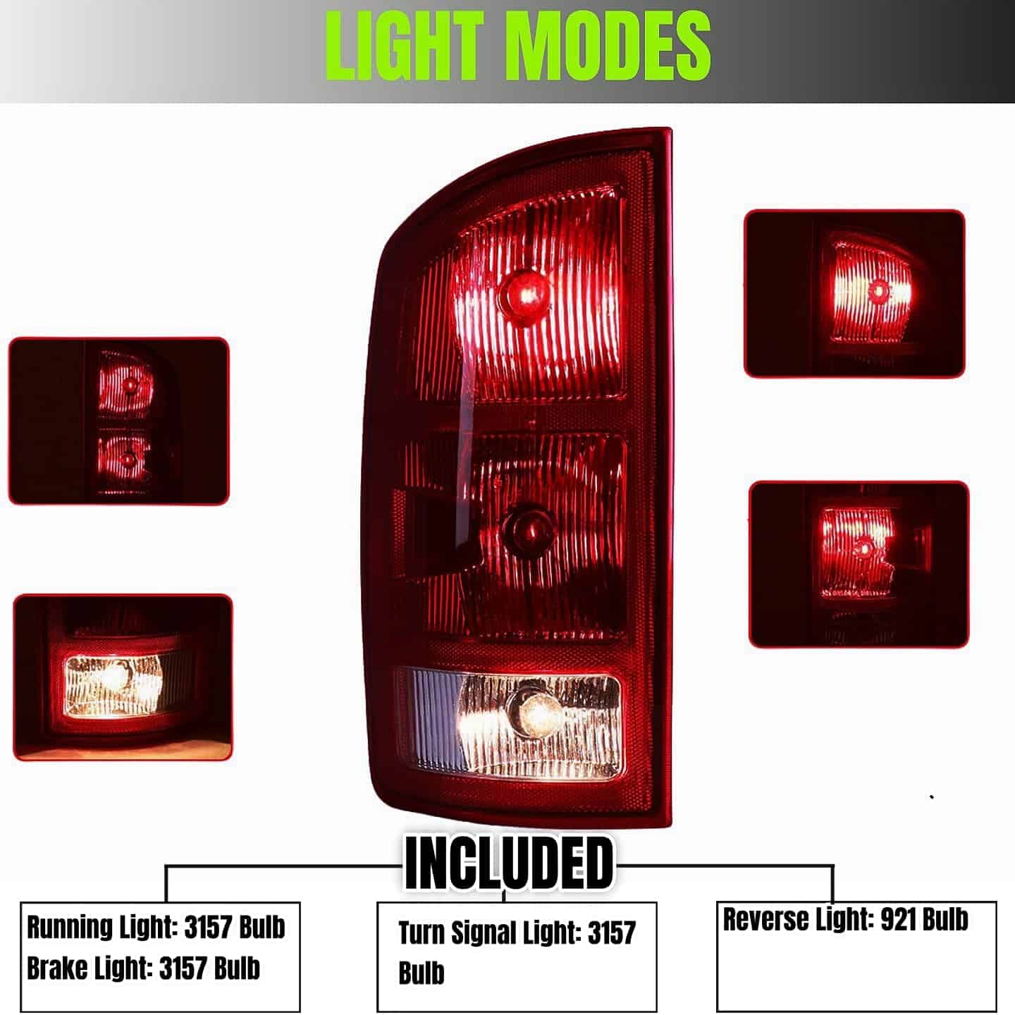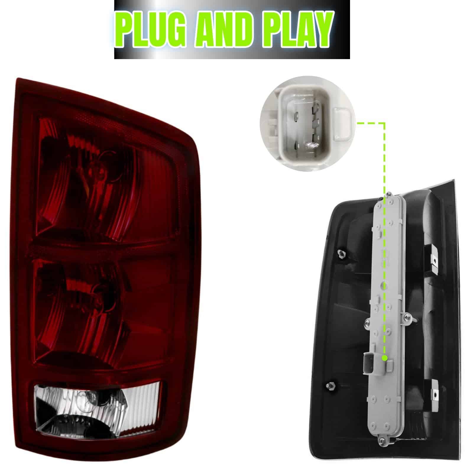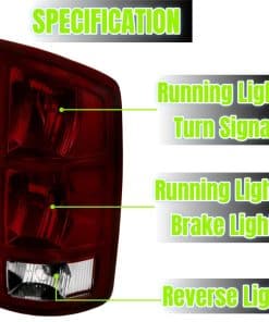 Las luces traseras WEISIGAO mejoran la visibilidad y el aspecto trasero: un par de luces traseras con intermitentes y luces de circulación mejorarán su iluminación para hacer su vehículo más visible para otros conductores y pasajeros, además de agregar estilo a la parte trasera de su vehículo. Con un diseño único y efecto de iluminación, las luces traseras no solo le ayudarán a mejorar la seguridad al conducir, sino que también harán que su automóvil sea más llamativo y muestre su personalidad. Estas luces traseras son compatibles con vehículos Dodge Ram 1500 pickup 2002-2006; Dodge Ram 2500 / 3500 pickup 2003-2006. Cumplen con las normas DOT/SAE. Reemplaza las partes originales (OE) con números de parte R: 55077348AF; L: 55077347AF; ABPA Partslink No.: R: CH2801147; L: CH2800147; Bulbos de la lámpara trasera: R L: L000003157A; Bulbo de reversa: R L: L0003057; Toma de la lámpara combinada: R L: 55077343AD. La lente con revestimiento de 3 capas tiene una excelente protección UV e impacto. La estructura del alojamiento completamente sellado y a nivel OEM es a prueba de golpes y a prueba de clima, lo que evitará que la humedad y el polvo entren en las luces. El disipador de calor de aluminio y el diseño del controlador de protección del circuito asegurarán eficazmente el funcionamiento normal de las luces. La lente de policarbonato resistente a impactos de una sola pieza y el chapado metálico mejoran drásticamente la iluminación; el reflector de seguridad lateral hace que los demás lo noten más rápidamente. La instalación de las luces traseras tiene un ajuste de fábrica de perno a perno, que incluye un conector Plug & Play directo, placa de circuito y bombillas, sin necesidad de cableado o modificación, por lo que completará la instalación rápidamente.