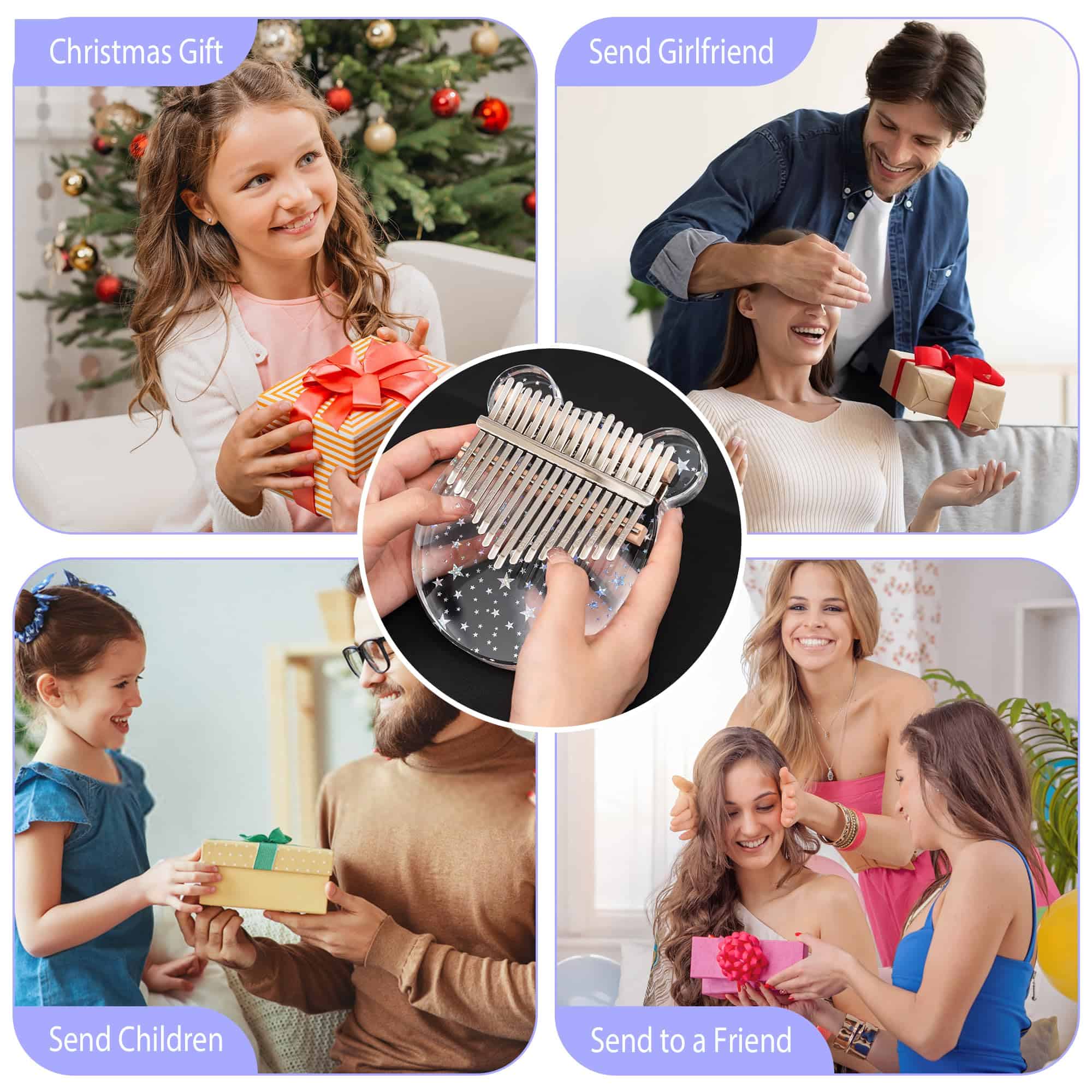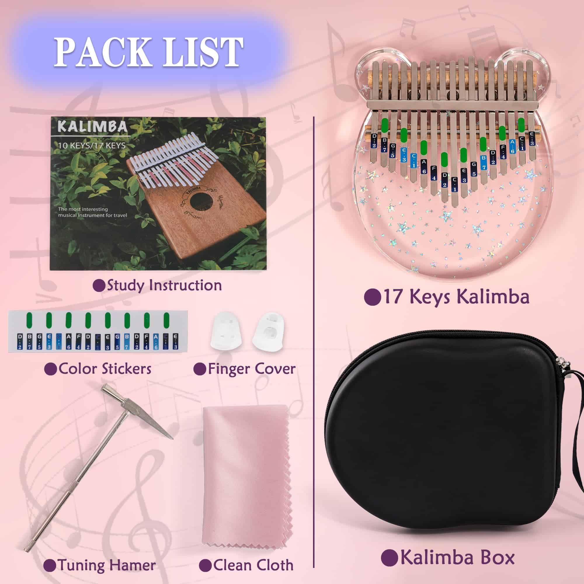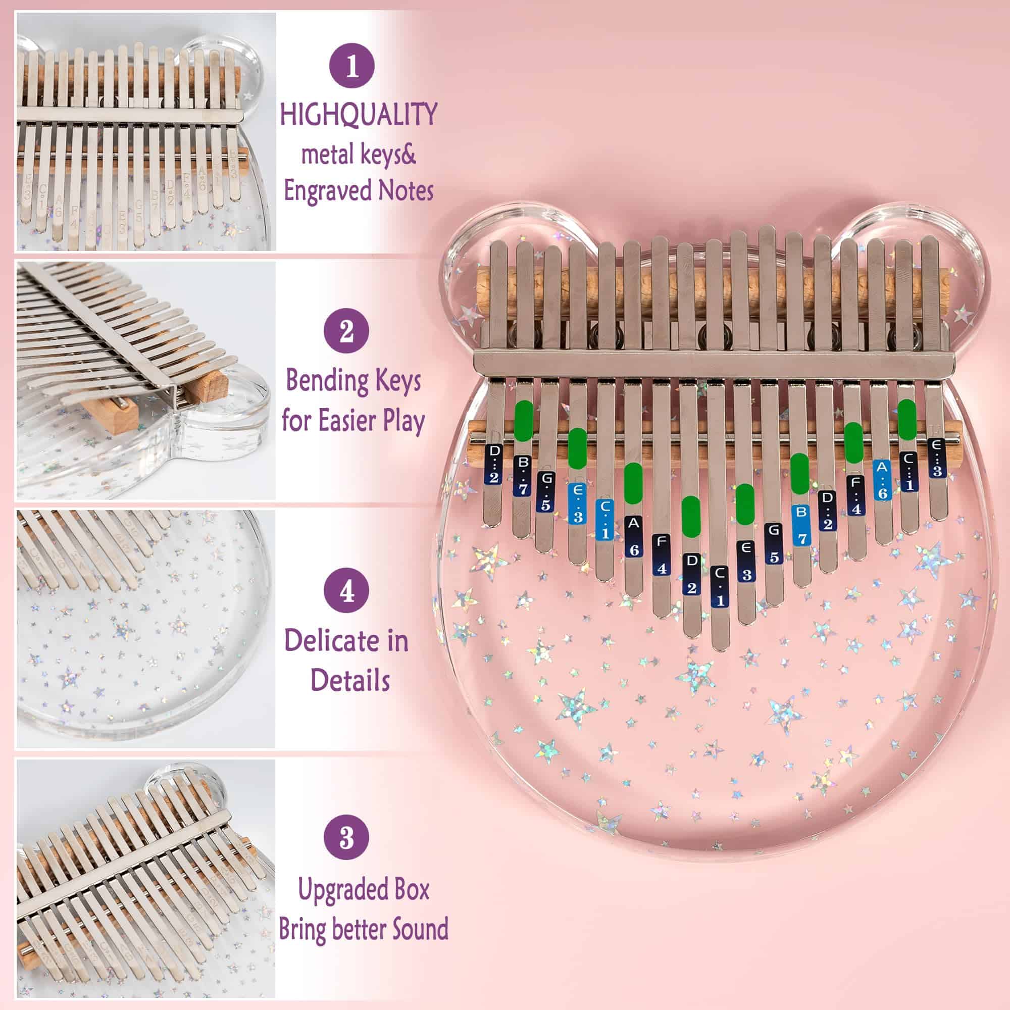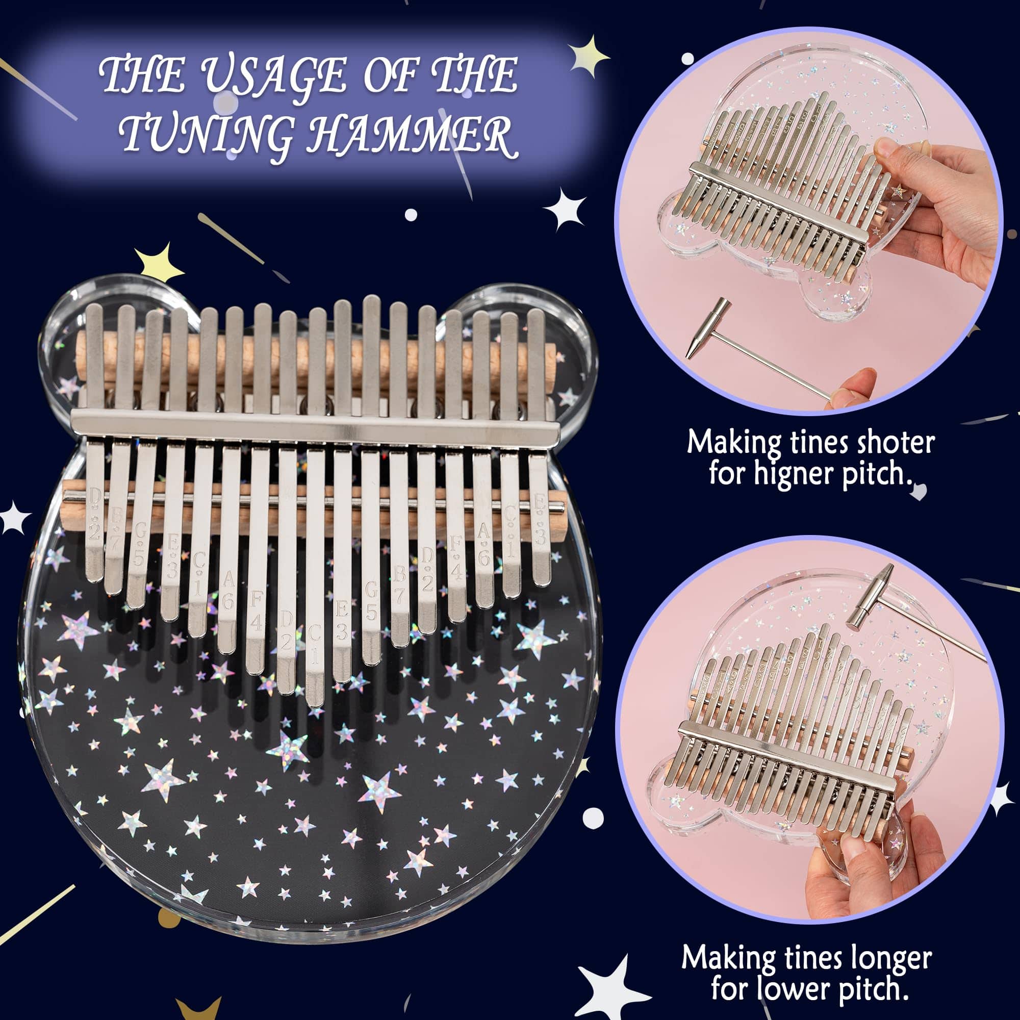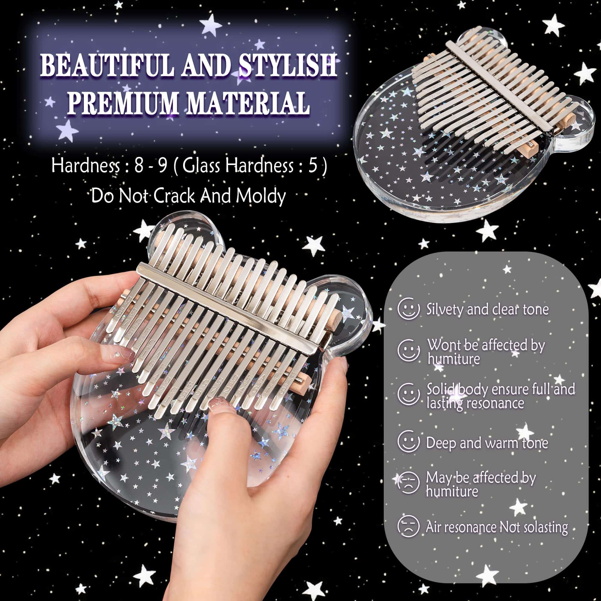 LUCKIPLUS Bear Kalimba Thumb Piano 17 Keys-Star Crystal