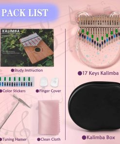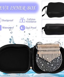 3. Set de instrumentos de piano de pulgar: Obtendrás un conjunto de instrumentos musicales mbira de 1 pieza de piano de pulgar de 17 teclas, 1 estuche de EVA, 2 protectores de pulgar de silicona portátiles, 1 martillo de afinación, 1 instrucción de estudio, 1 pegatinas de teclas de piano de pulgar kalimba, 1 paño de limpieza. Este conjunto de piano de dedo kalimba es adecuado para viajar y entretener, reuniones de amigos y familiares, también puedes regalárselo a tus hijos y padres durante las vacaciones.