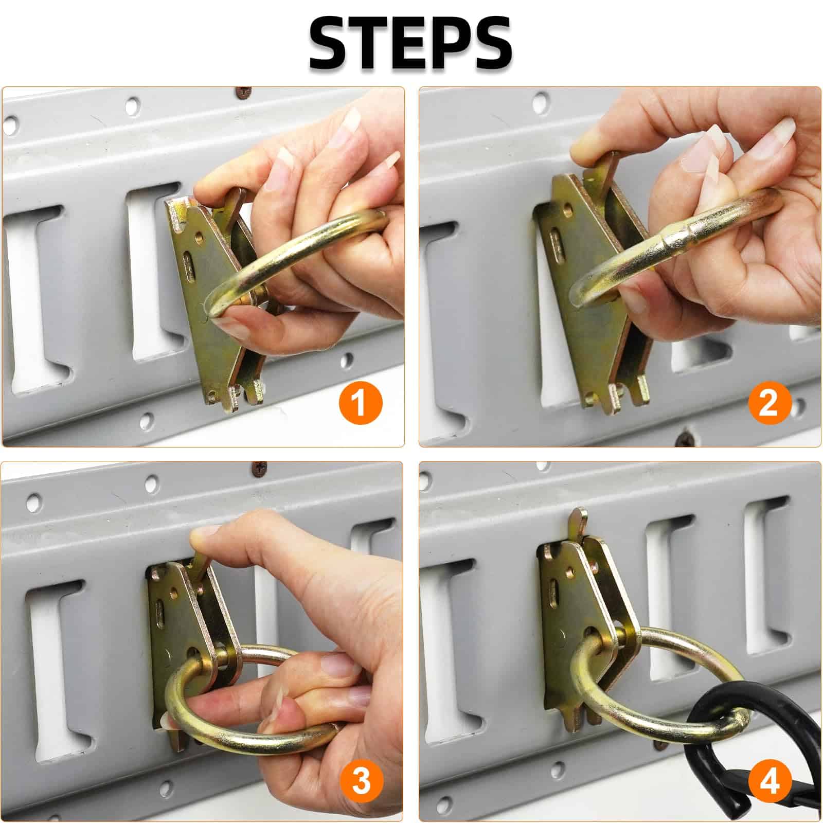 4. Uso Multifuncional Diseñados para una máxima utilidad, estos anillos son ideales para asegurar muebles, bicicletas, electrodomésticos pesados, instrumentos musicales y diversas otras mercancías. Son el ajuste perfecto para una amplia gama de vehículos y áreas de almacenamiento, incluyendo remolques cerrados, camas de remolque, camionetas, camiones, furgonetas, así como talleres y cobertizos.