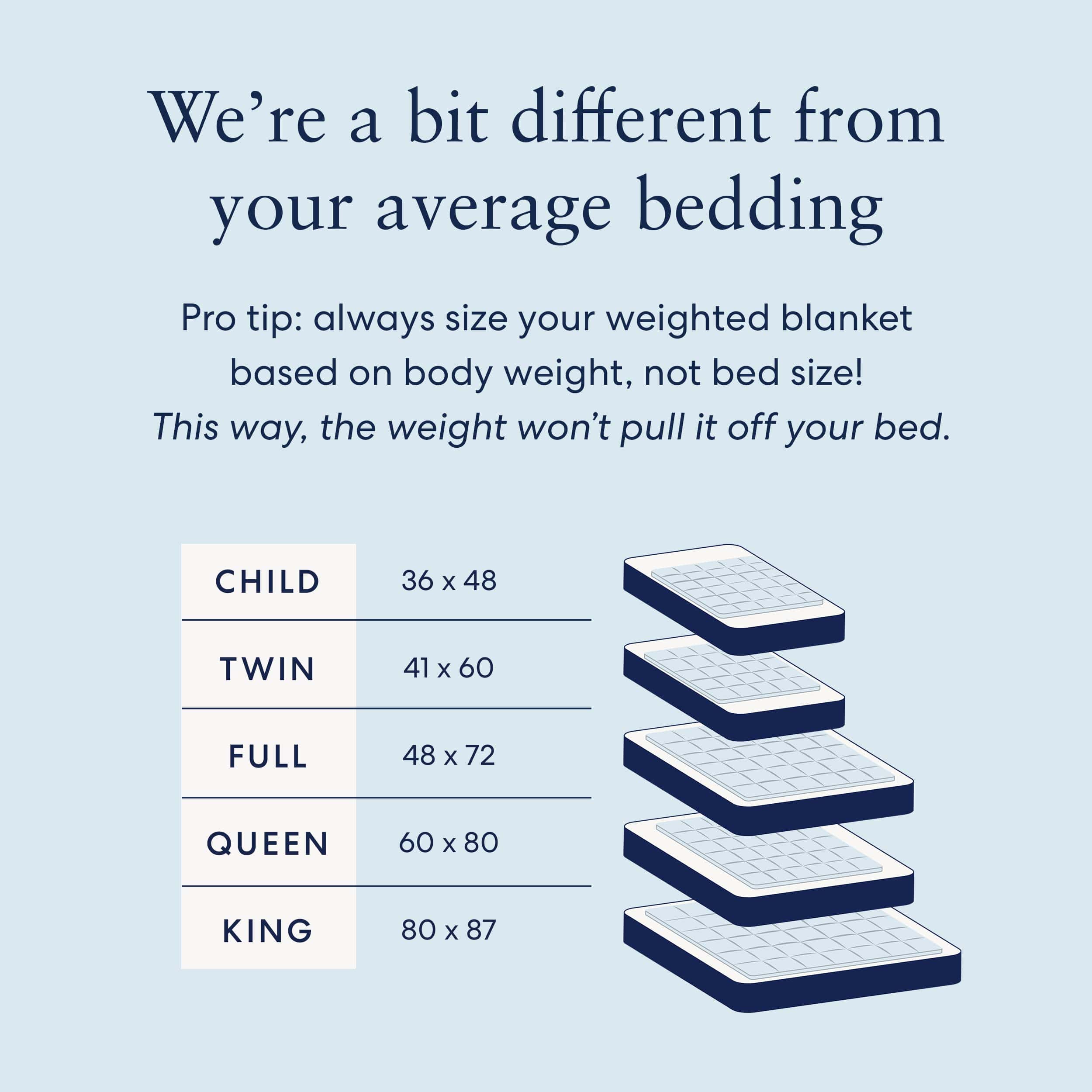 Luna CoolLuxe True Cooling Weighted Blankets – Manta de calidad premium, manta refrescante ponderada transpirable – Manta refrescante para dormir caliente. ¡Consiga su descanso más profundo y relajación con nuestra manta ponderada Luna CoolLuxe! Fabricada con materiales de alta calidad de primera clase, nuestra manta suave y refrescante está rellena de perlas de vidrio premium para una sensación de confort incomparable. La tela CoolLuxe, con patente registrada, es fresca al tacto y dispersa el calor del cuerpo para mantenerlo cómodo toda la noche, convirtiéndola en la manta refrescante ponderada perfecta para adultos que duermen calientes. La manta Luna cuenta con un innovador diseño inteligente que distribuye el peso de manera uniforme por todo su cuerpo, evitando que el peso se agrupe o se acumule. Diseñada para adultos y niños, nuestras mantas ponderadas están disponibles en tamaños Full y Queen, y en pesos de 12 libras y 15 libras. Consulte nuestras tablas de tallas y pesos para encontrar la mejor manta para usted y seleccione nuestra opción de paquete para obtener una actualización con funda nórdica incluida. Las mantas ponderadas Luna son fáciles de cuidar, se pueden lavar a máquina en un ciclo suave o a mano para una limpieza sin estrés. Secar al aire es la mejor opción, pero si necesita usar la secadora, seque a baja temperatura. Luna, líder en tecnología de sueño y confort, ha ayudado a más de cinco millones de personas a dormir mejor. Nuestros productos son investigados, desarrollados y diseñados en los Estados Unidos, y han sido presentados en el Today Show en varias ocasiones. Disfrute de la tranquilidad con nuestra garantía de dos años. ¡Obtenga su Luna CoolLuxe True Cooling Weighted Blankets hoy mismo y experimente la diferencia en su descanso!