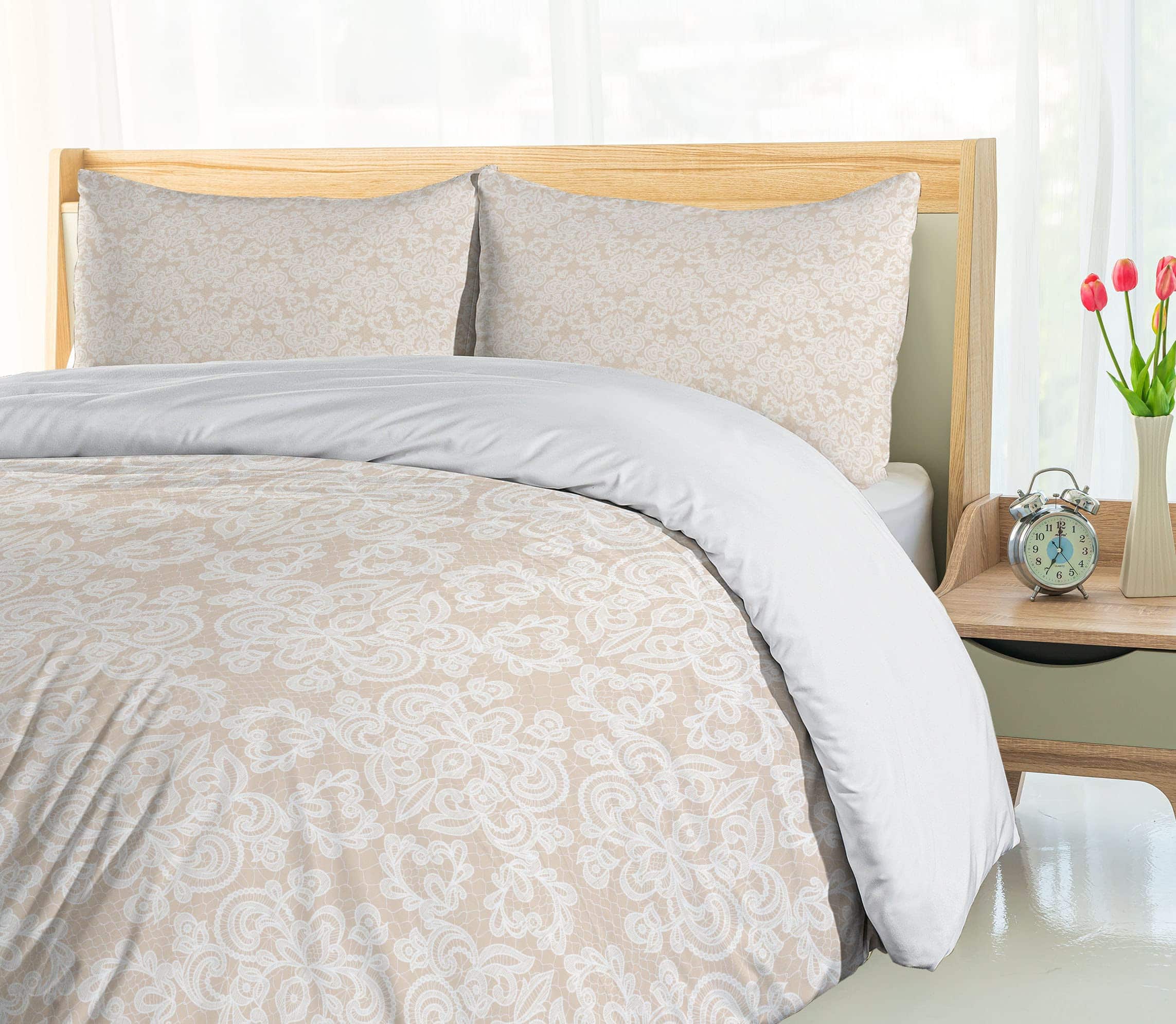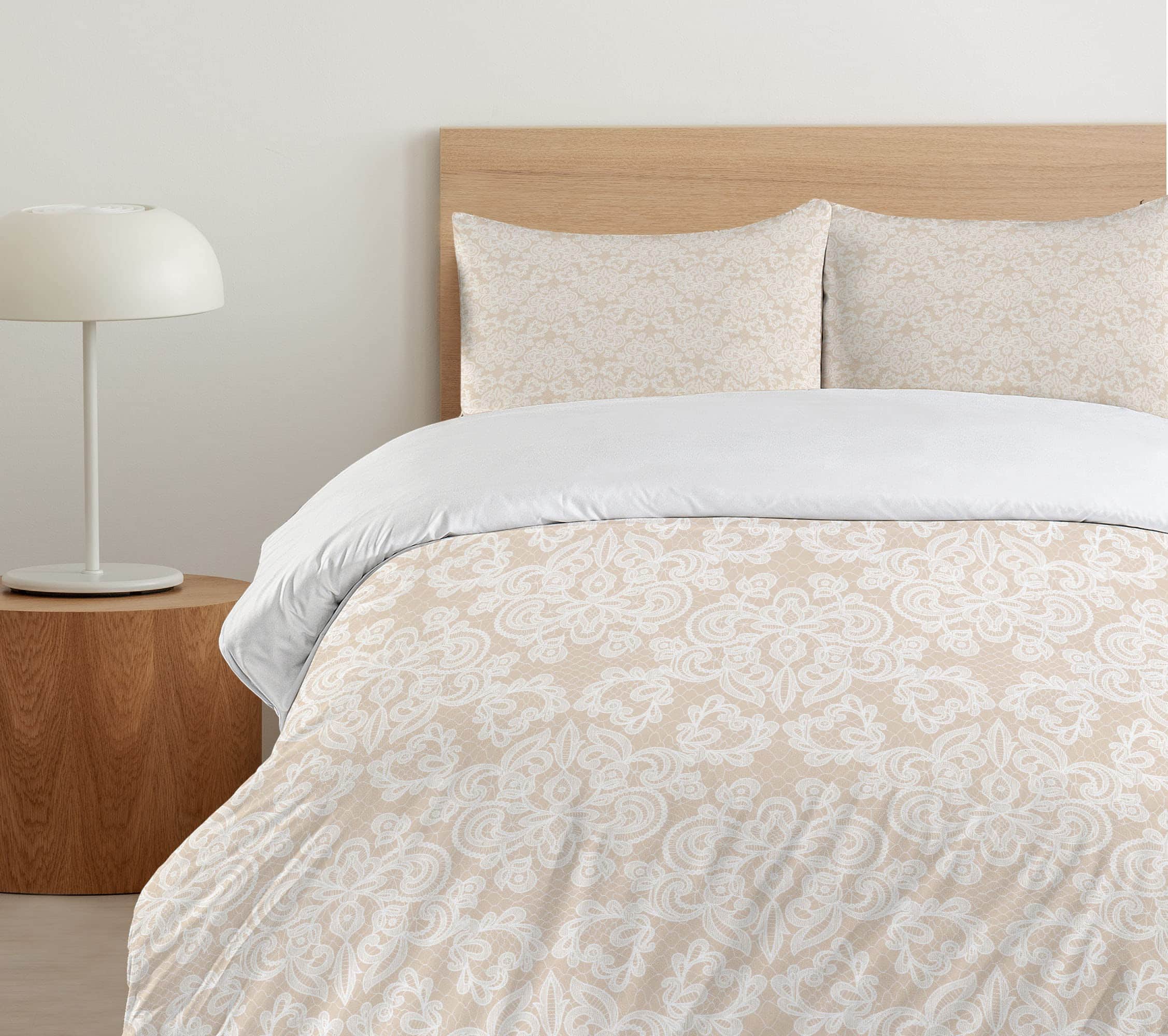 Lunarable Juego de Funda Nórdica Crema, Diseño Simétrico