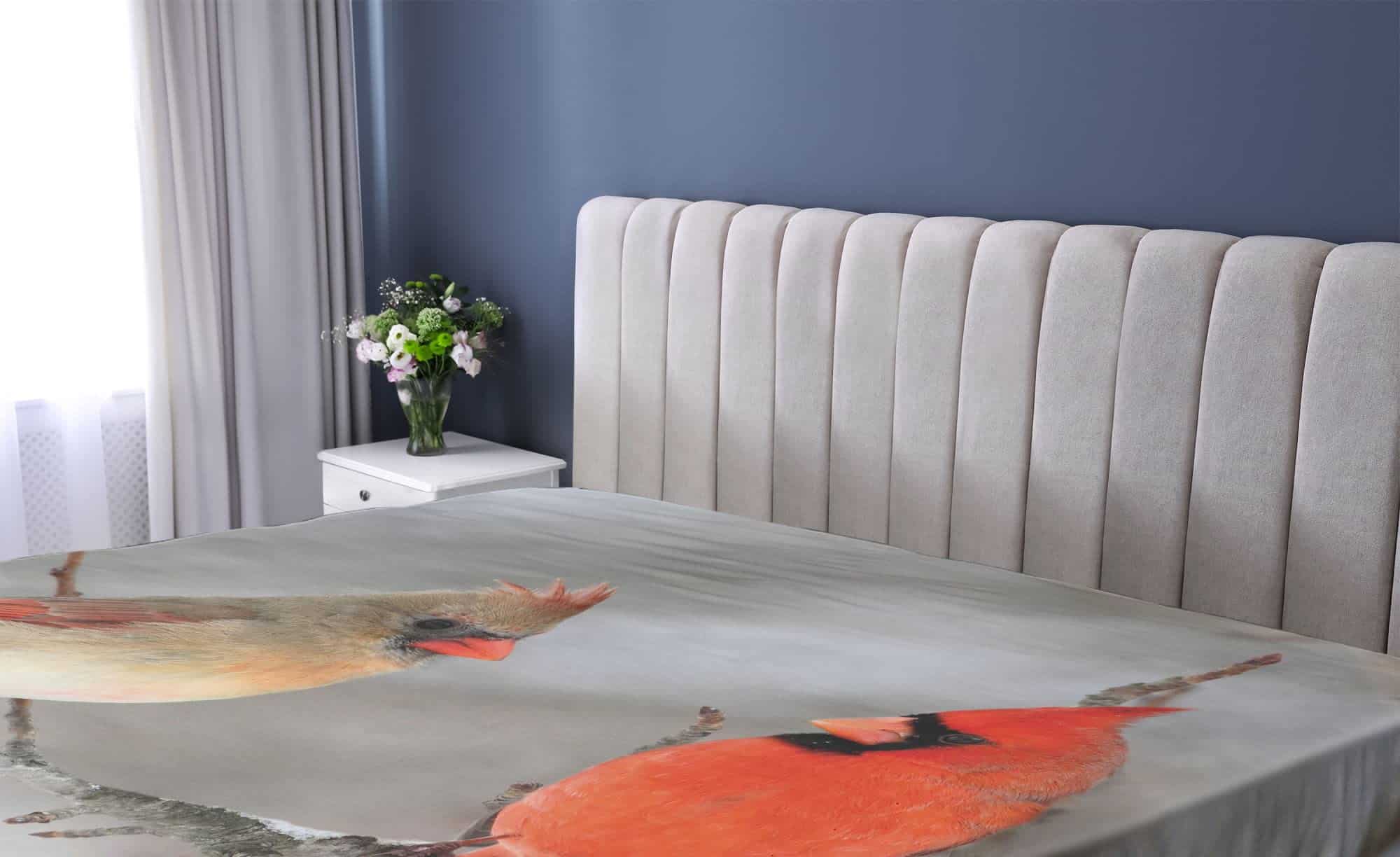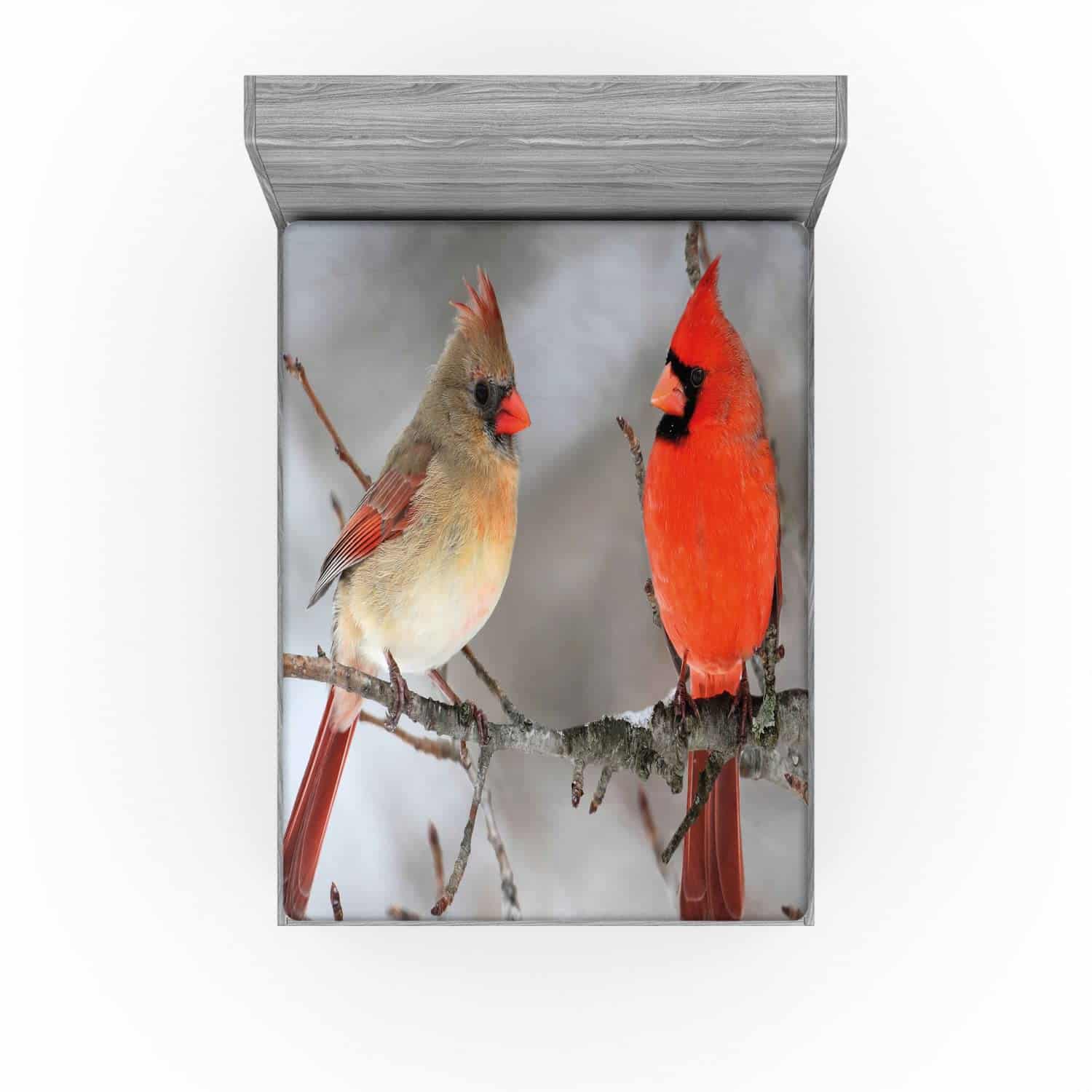 Lunarable Sábana Ajustable de Pájaros, Par de Cardenales