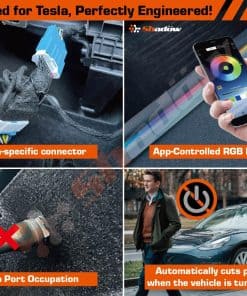 Luz ambiental del centro de consola Shadow para Tesla Model 3(2021~2023) & Model Y(2021~2024) – Tira de iluminación RGB para reposabrazos de 21.65 pulgadas. El apagado automático ahorra energía, cortando automáticamente la alimentación cuando el vehículo se apaga. Conector ECU dedicado que no ocupa puertos USB o encendedores de cigarrillos. Personalice el interior de su Tesla con luces cambiantes de colores brillantes a través de una aplicación móvil. Agregue iluminación sutil pero elegante para mejorar la estética interior de su Tesla. Luces LED duraderas y energéticamente eficientes hechas específicamente para interiores de Tesla.