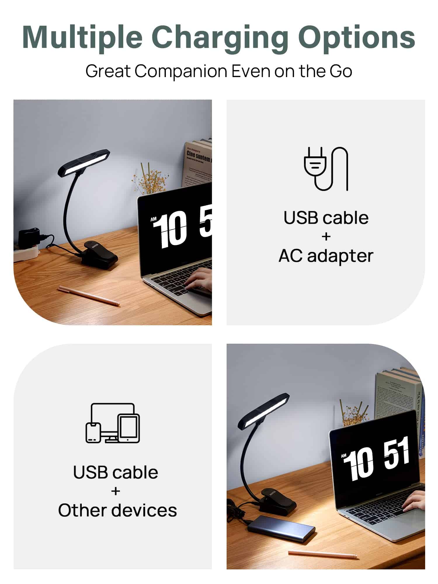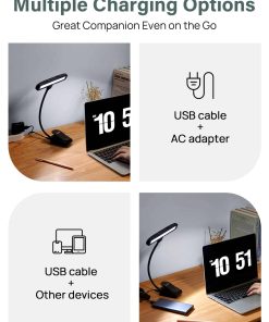 p b Kootek 10 LED Luz de Atril Clip On Ajustable Cuello Flexible LED Brillo Lectura Booklight con Adaptador de Corriente de CA Bater�a de Litio Recargable USB /b /p p b Multiuso /b br Estilo Clip-on La abrazadera agarra casi cualquier cosa o util�cela de pie libre. /p p b Inal�mbrico y port�til /b br Puede ser alimentado por bater�a incorporada, por lo que es inal�mbrico y port�til. Puede llevarlo a moverse por su casa o llevarlo consigo mientras viaja. /p p b Diseño elegante /b br Cuello de cisne flexible para ajustar su altura y �ngulo, 10 LED brillantes, ultra port�til y ligero. /p p b F�cil de usar /b br Interruptor de encendido de f�cil acceso detr�s para encender/apagar y controlar dos niveles de brillo. /p p b Ampliamente utilizado /b br Puede usar en casa, colegio, oficina, dormitorio o viajes. /p p b Paquete incluido /b /p p 1 x Luz de Atril(bater�a recargable incorporada) br 1 x Adaptador de corriente ETL4006717/GDP06AV-XXXYYYY-UL de CA br 1 x Cable USB /p