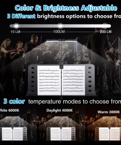 Vshinic Folding Music Stand Light es una luz de atril recargable con 18 LED súper brillantes. Cuenta con 9 niveles de brillo y 3 temperaturas de color para adaptarse a tus preferencias. Puede sujetarse a casi cualquier superficie, cuenta con una cabeza plegable de 180 grados para mayor comodidad de almacenamiento y transporte. Es recargable a través de cable USB (incluido) y es ideal para atriles de música, lectura, tocando instrumentos musicales, DJs, mesas de trabajo, etc. Portátil y liviano, fácil de transportar.