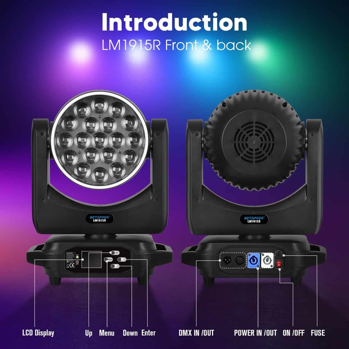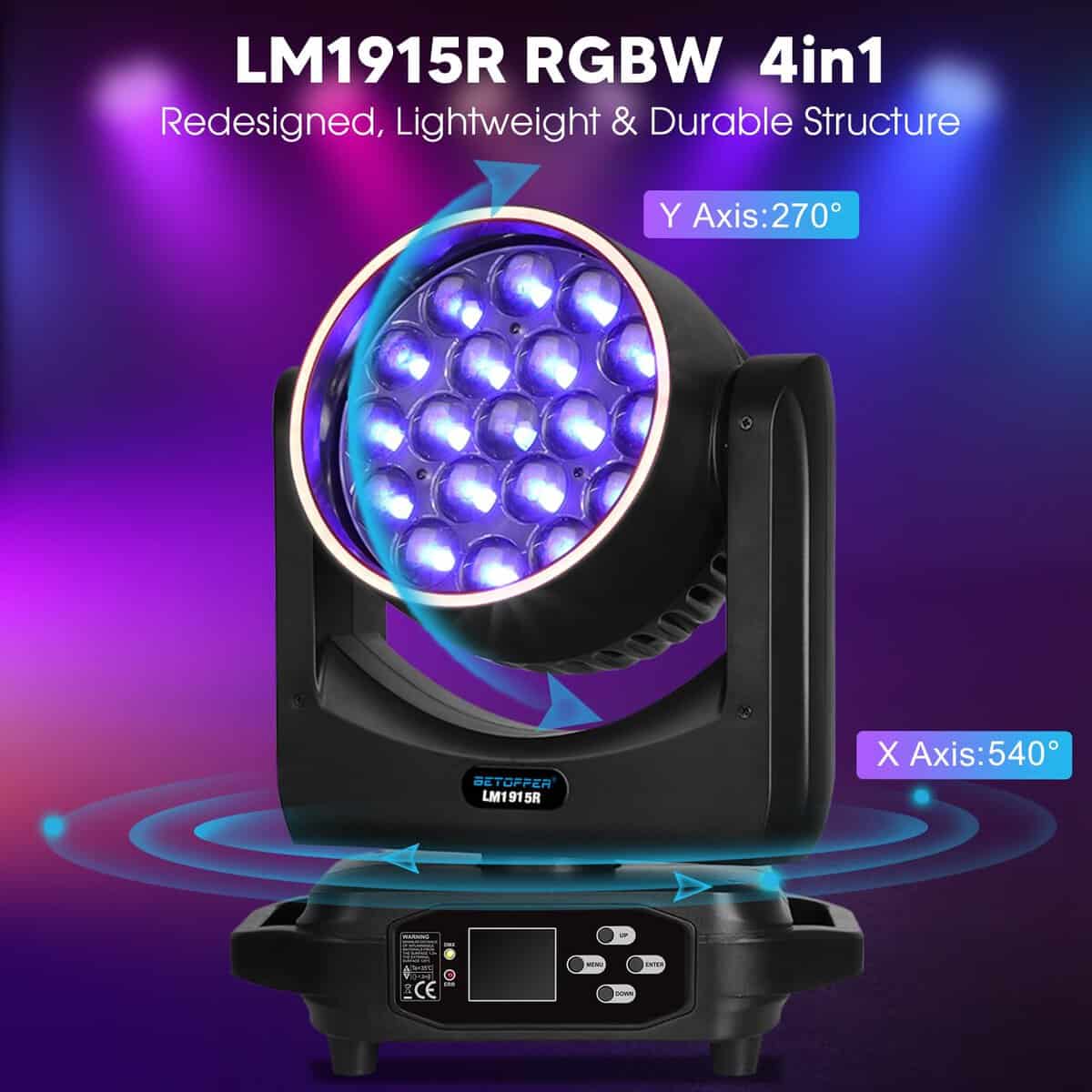 Luz de Cabeza Móvil BETOPPER, 19x15W RGBW con Efecto de