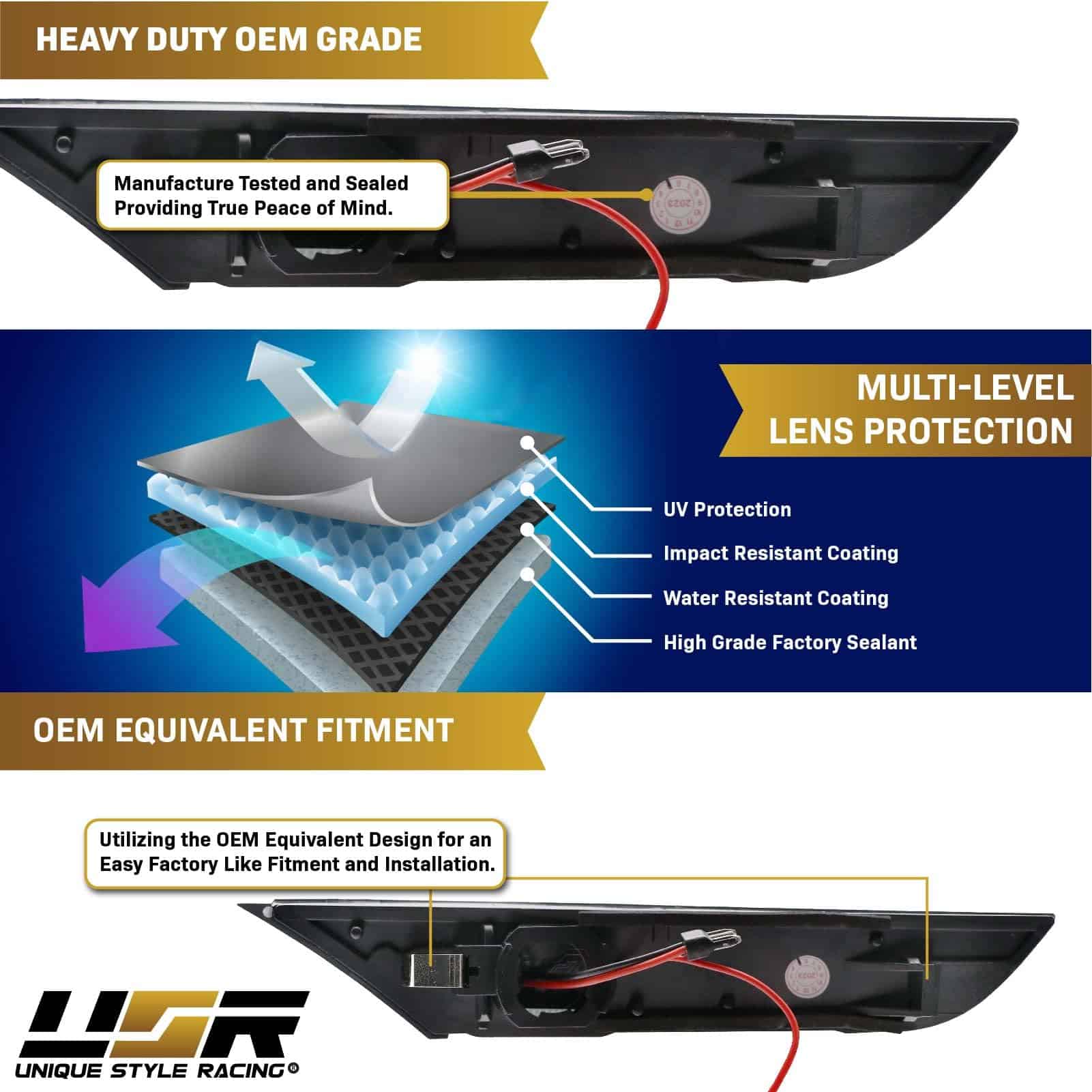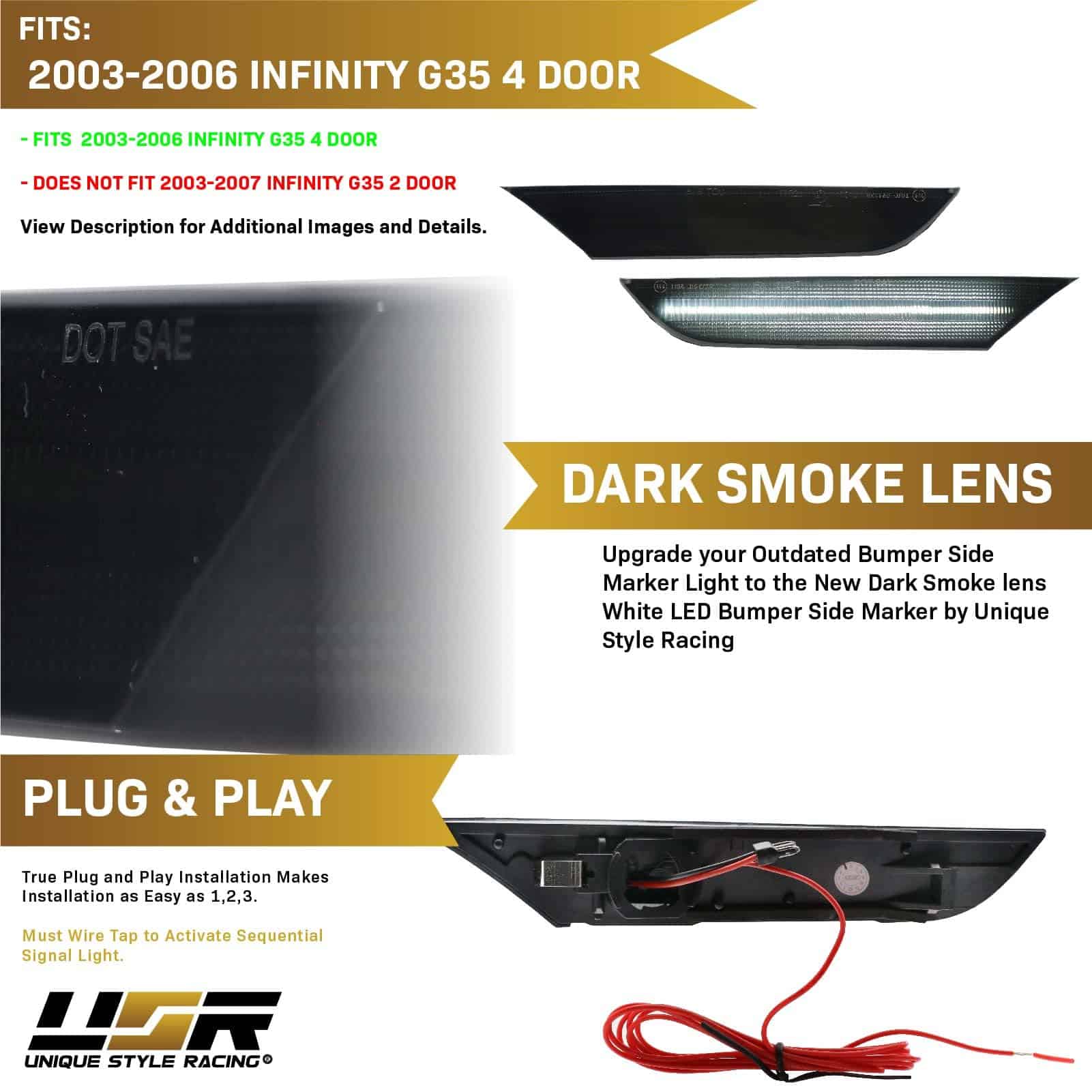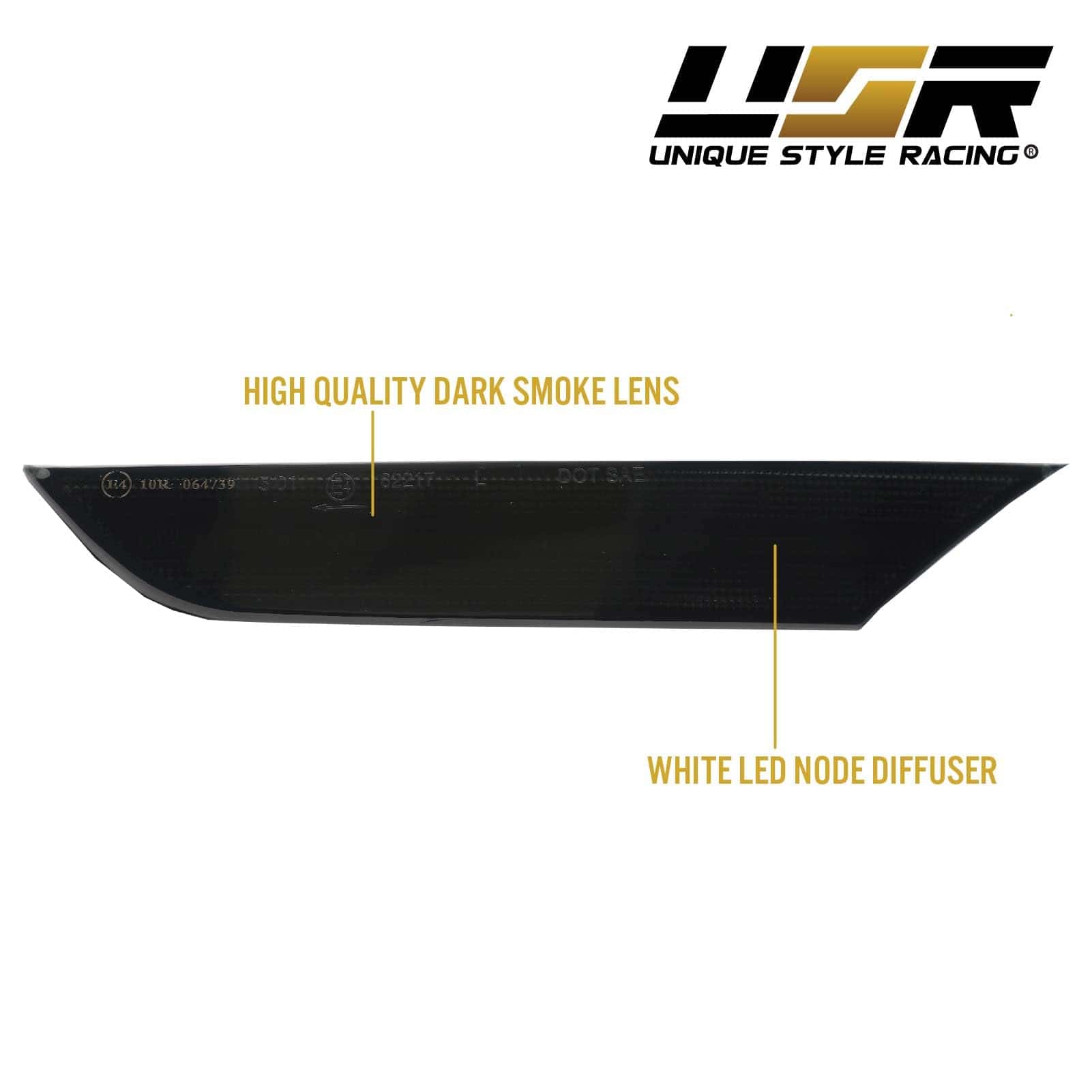 Actualizar tus antiguas luces laterales dañadas de paragolpes delantero a estas luces LED con lente ahumada y secuenciales. Con luces de estacionamiento blancas brillantes y luces de giro secuenciales. Fabricado con materiales de alta calidad para un ajuste OEM. Incluye un par (Izquierda + Derecha) de luces de marcador lateral LED de lente ahumada para el paragolpes delantero.