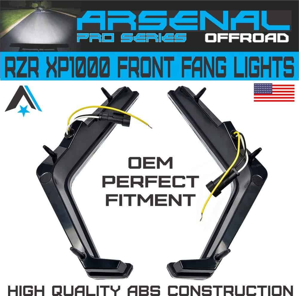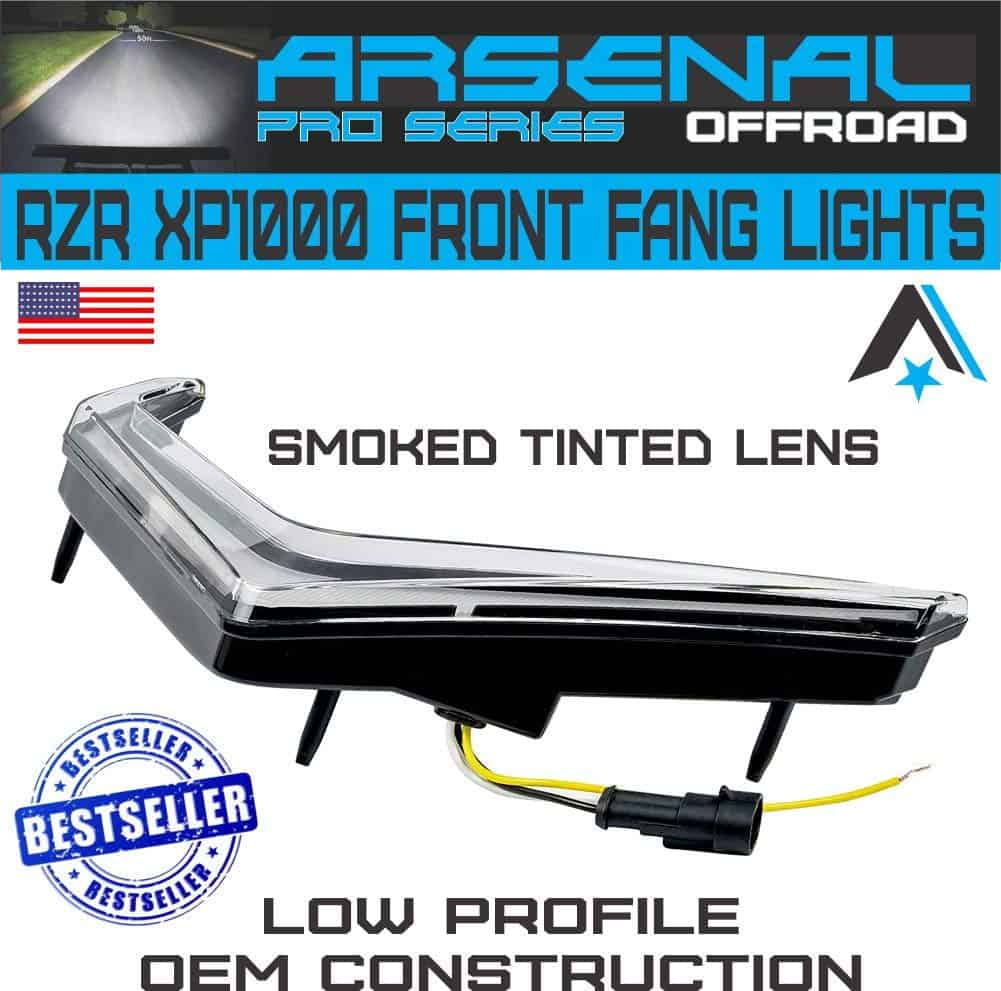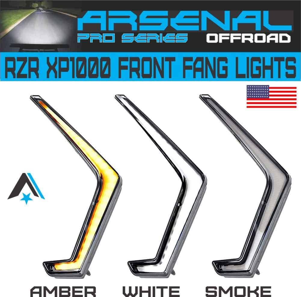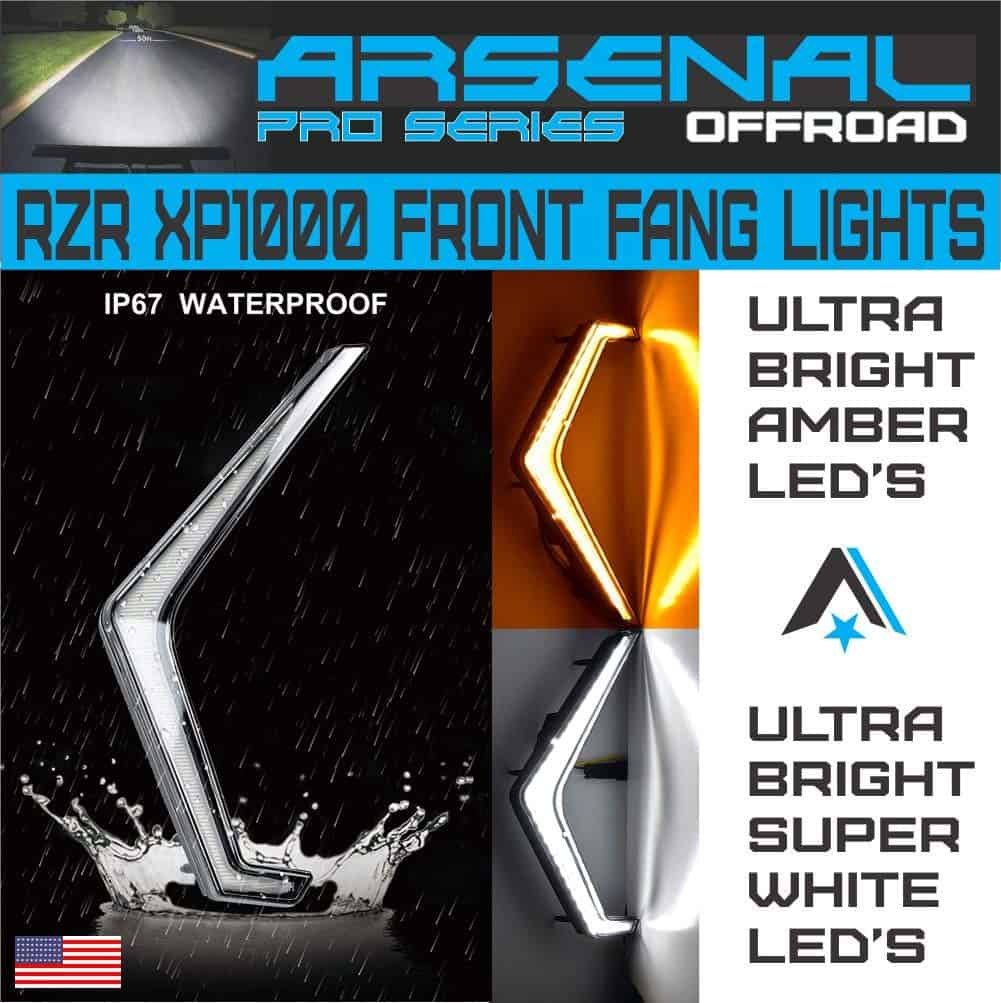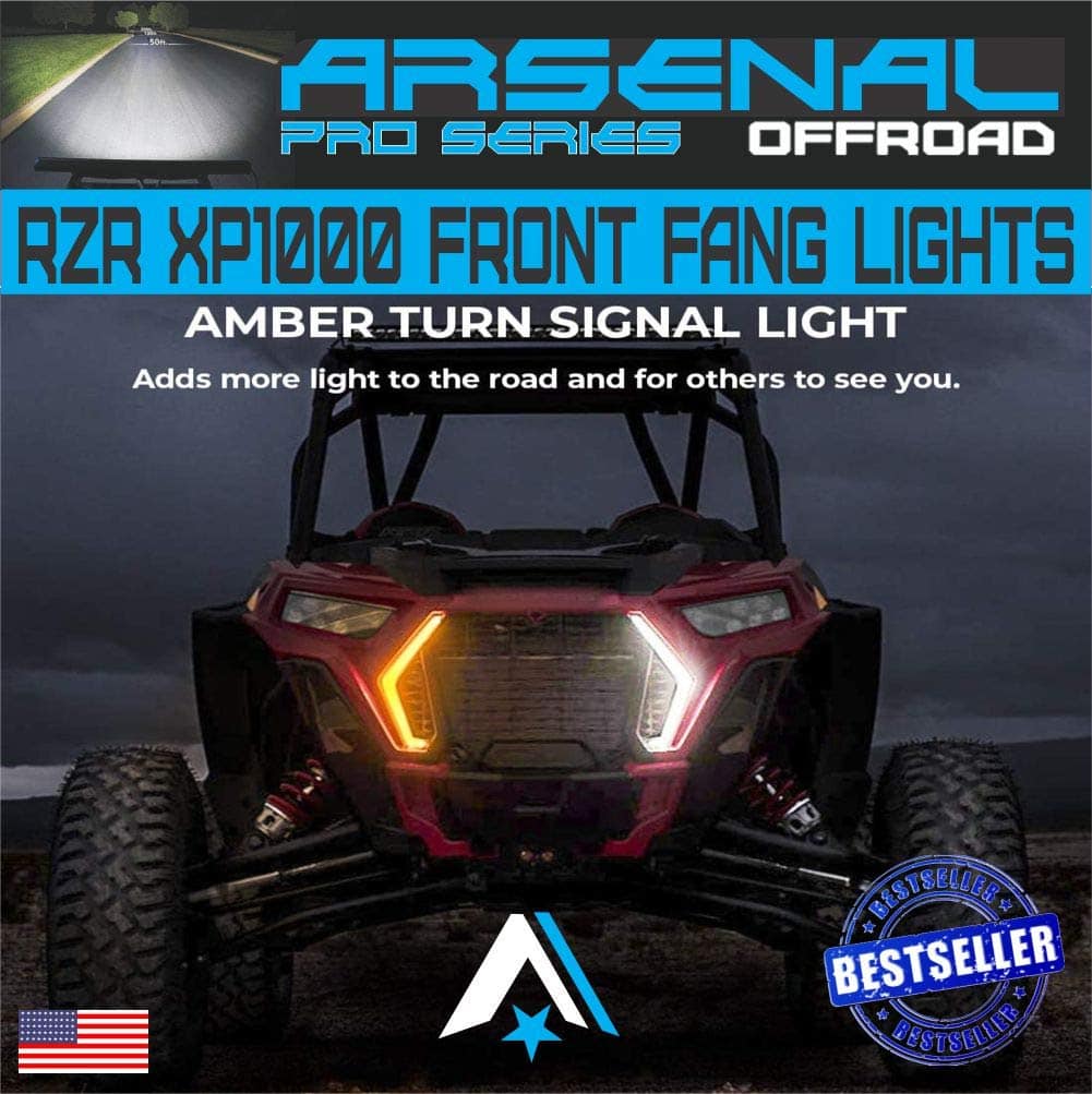 Luz de señal de giro RZR, Arsenal IP67 Luz delantera de firma/smoke Fang Light Ámbar/Blanco Compatible con 2019 a 2021 Polaris RZR XP1000 Turbo Ajuste OEM Perfecto Luces LED delanteras blancas con luz de señal de giro ámbar. Fácil instalación, simplemente conectar y listo. Reemplazo de posventa asequible de alta calidad (2884053) Carcasa de ABS de alta calidad, lente frontal de humo claro electro-soldada para garantizar una larga vida útil. Voltaje de funcionamiento: 12V DC, Temperatura de color: 6500K, Flujo luminoso: 390LM Compatible con: Polaris RZR XP Turbo 2019-2021, Polaris RZR XP 4 Turbo 2019-2021, Polaris RZR XP 4 1000 2019-2021, Polaris RZR XP 1000 2019-2021 Garantía de 12 meses contra defectos de fabricación. Paquete de pegatinas Arsenal gratis.