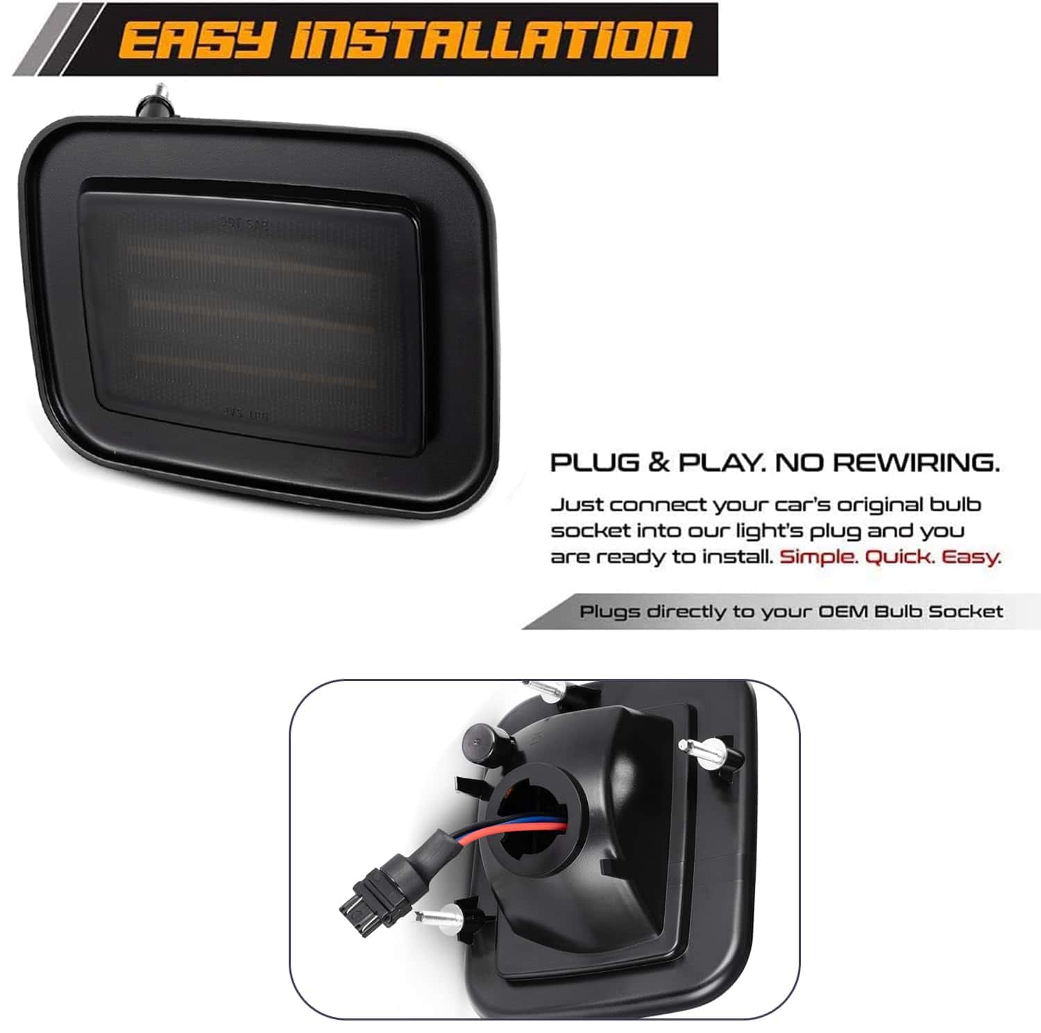 Conectar y listo, conecte el cable adicional a su ACC 12V+ o al cable positivo de la bombilla de luz de estacionamiento original para habilitar la función LED blanco de xenón.