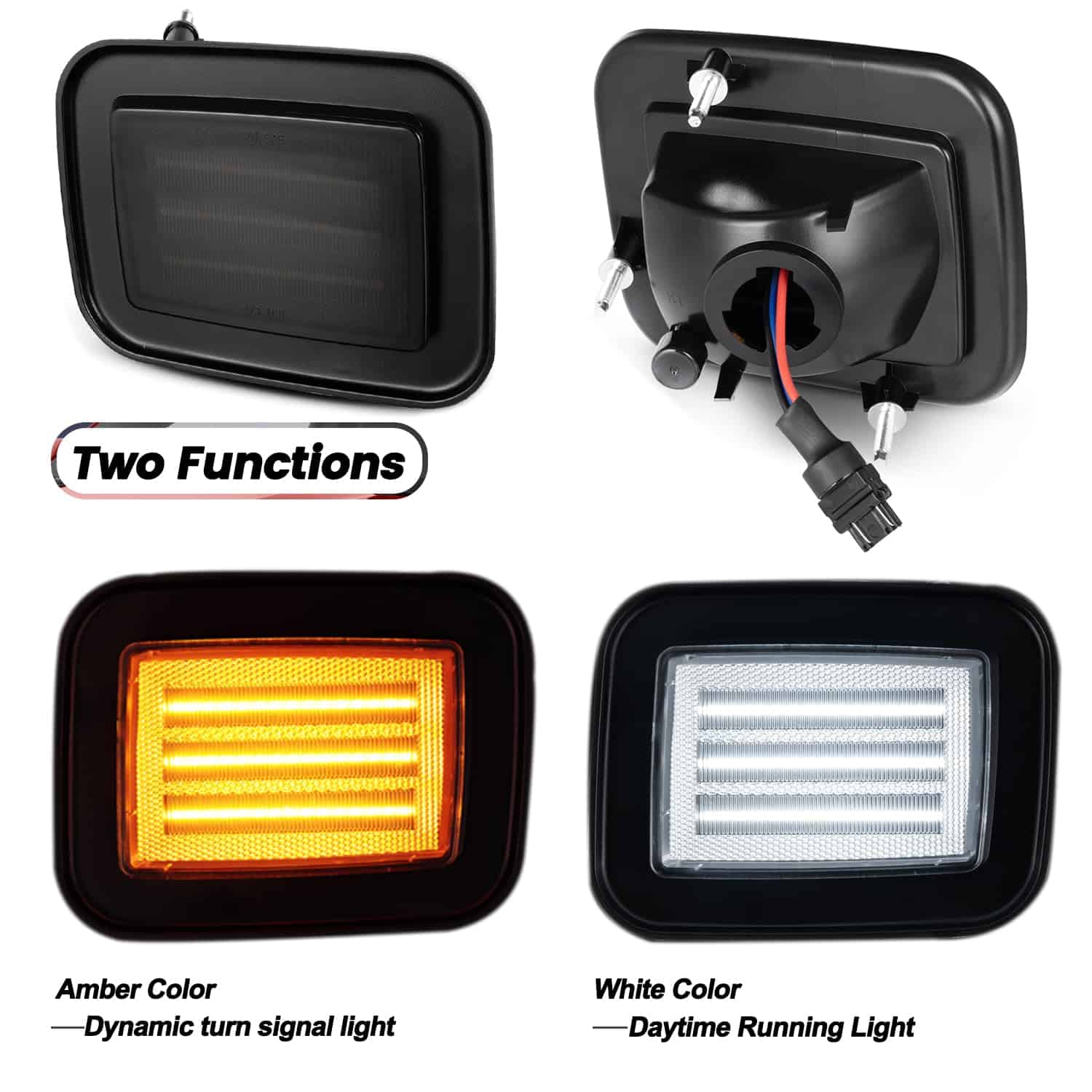 Alimentado con luces LED ámbar súper brillantes en el interior para luces de intermitente y luces LED blancas de xenón para luces diurnas.